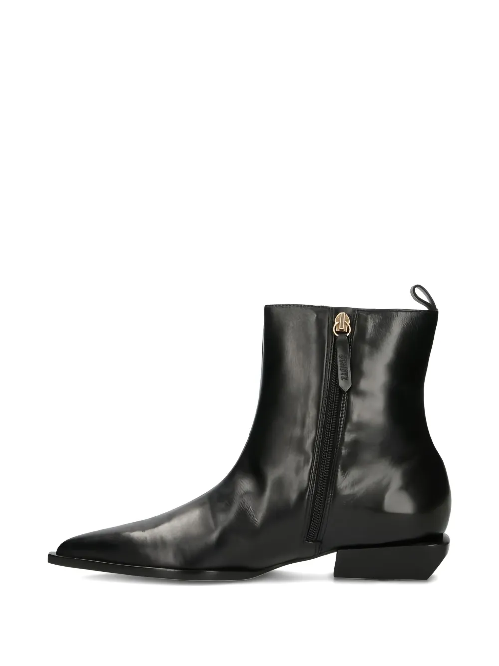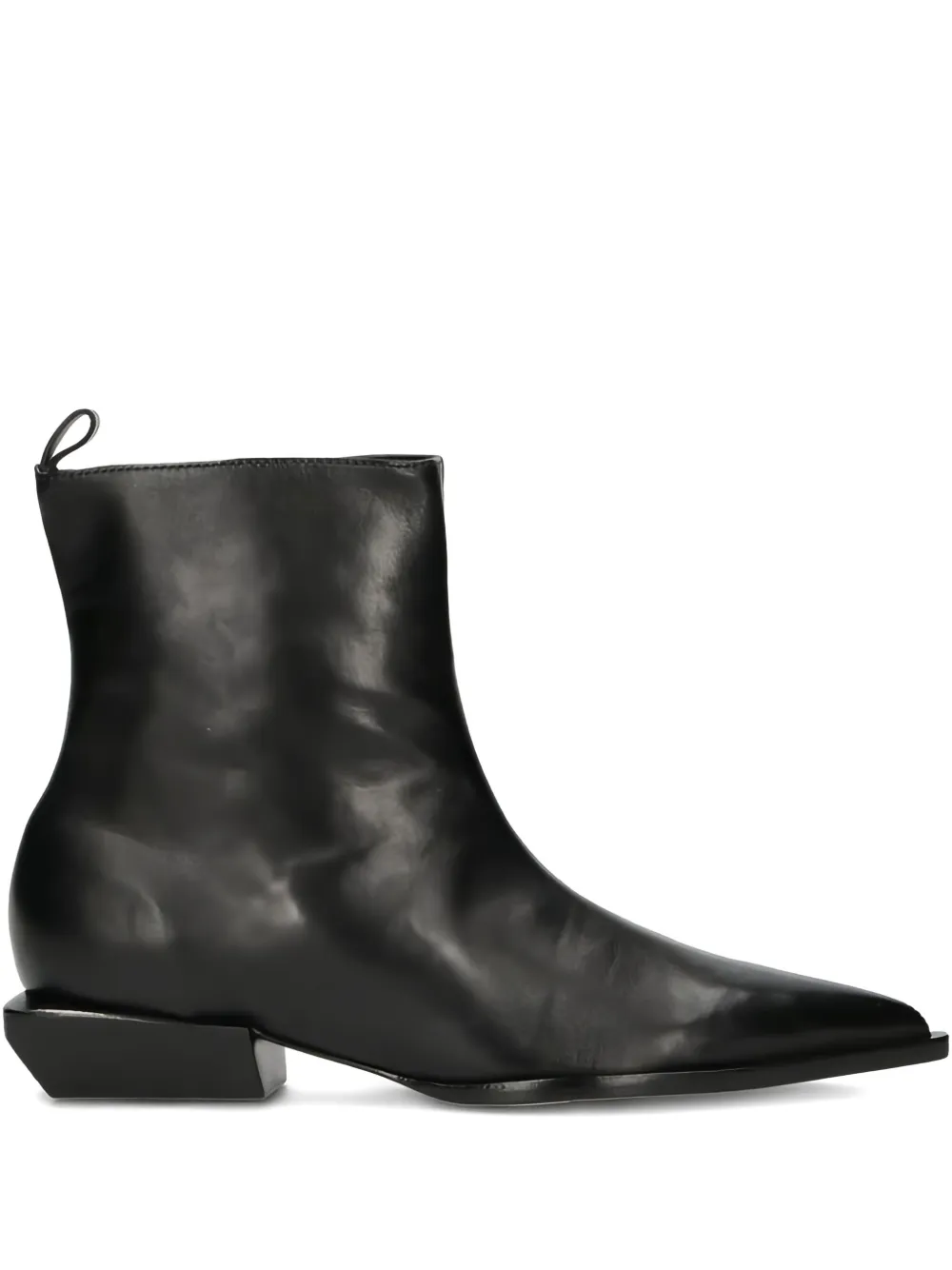 черные ботильоны на молнии с язычком, блочным каблуком и заостренным носком