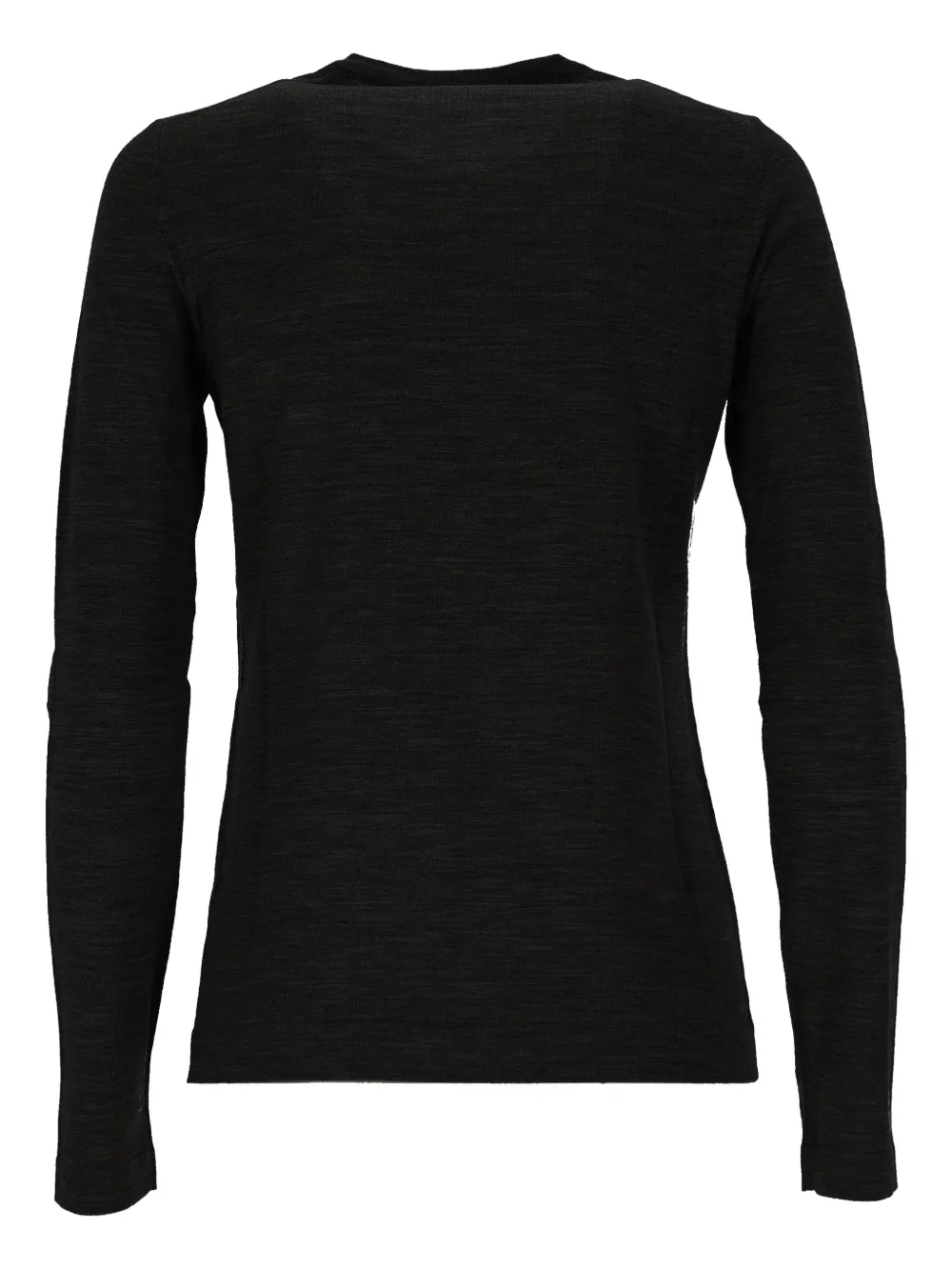 чёрный свитер с круглым вырезом, застёжкой на пуговицы и длинными рукавами