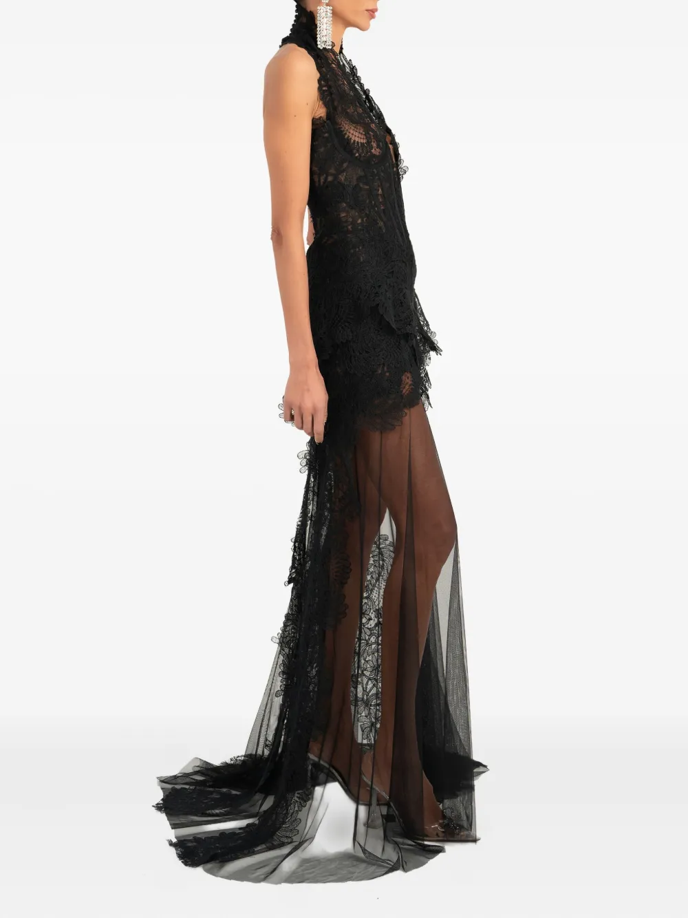 Макси-платье с кружевной отделкой Ana Radu, черный