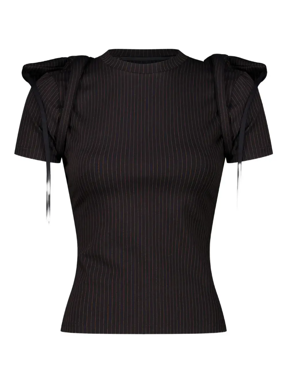 черный с принтом в полоску, подплечники, капюшон, завязки, короткие рукава
