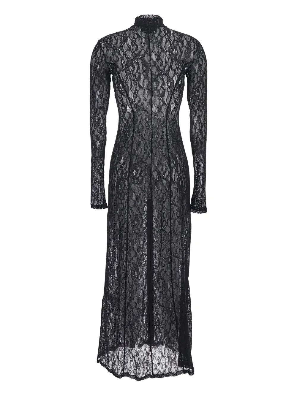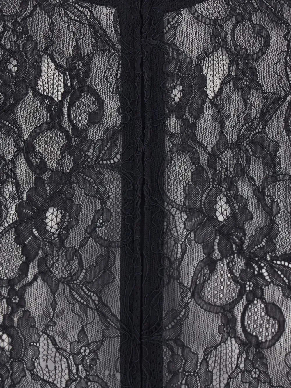 черный полупрозрачный дизайн, вышивка по всей поверхности, высокий воротник, длинные рукава, прямой низ