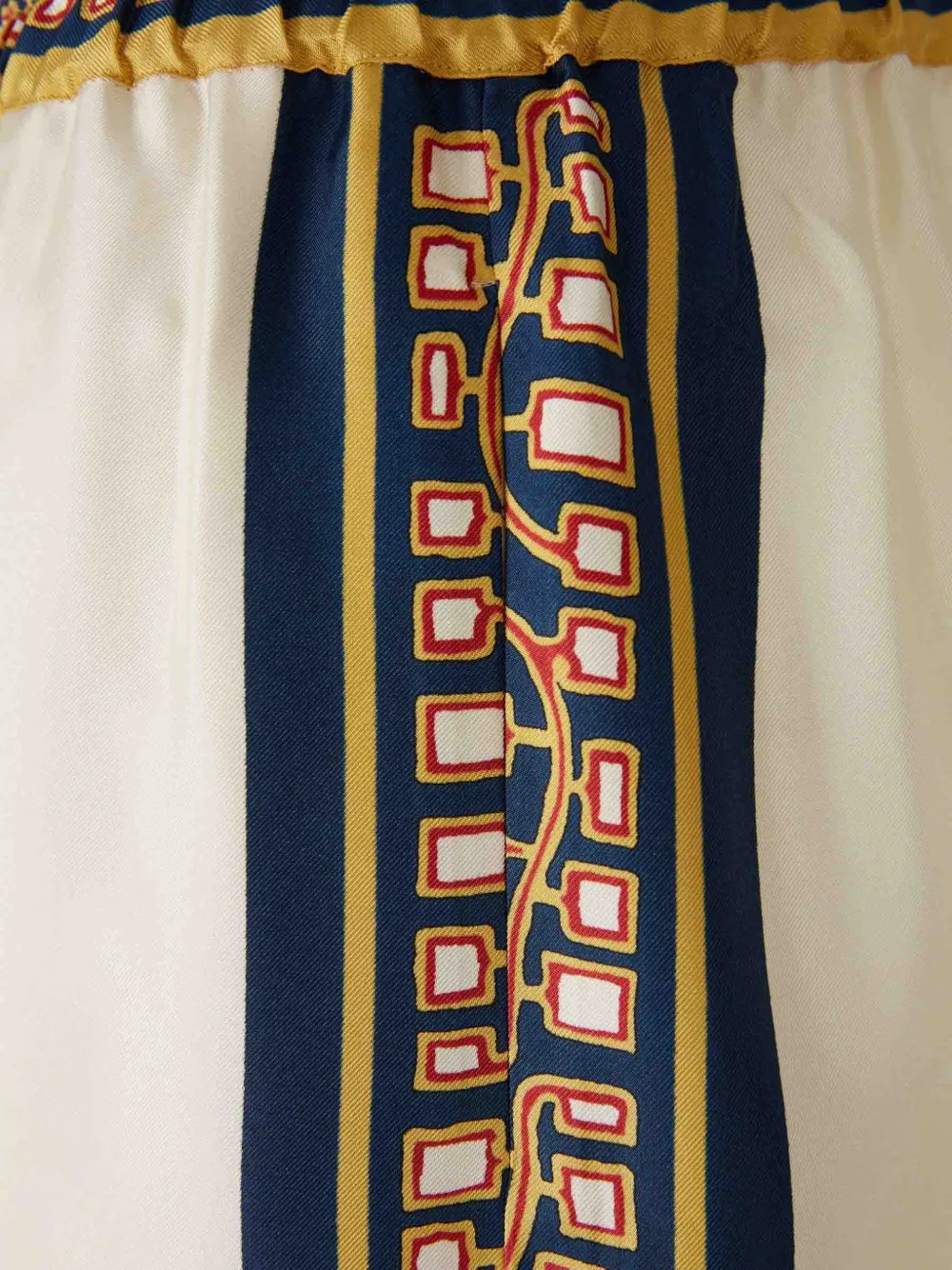 шелковые брюки цвета экрю с эластичным поясом и боковыми карманами