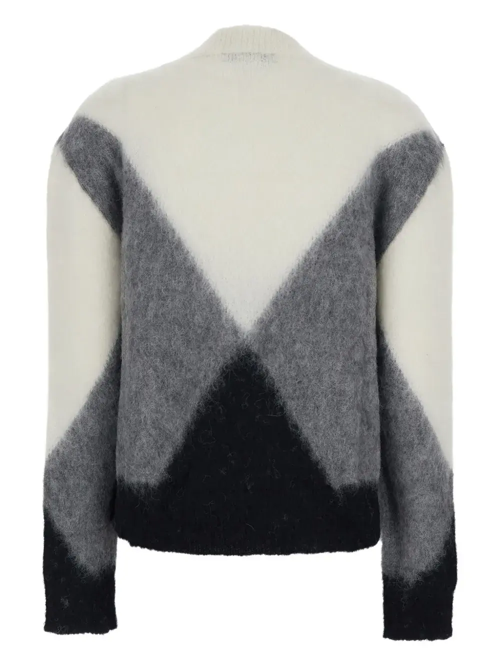 белый/многоцветный свитер с геометрическим узором, эффектом взъерошенной ткани, круглым вырезом, длинными рукавами и прямым подолом