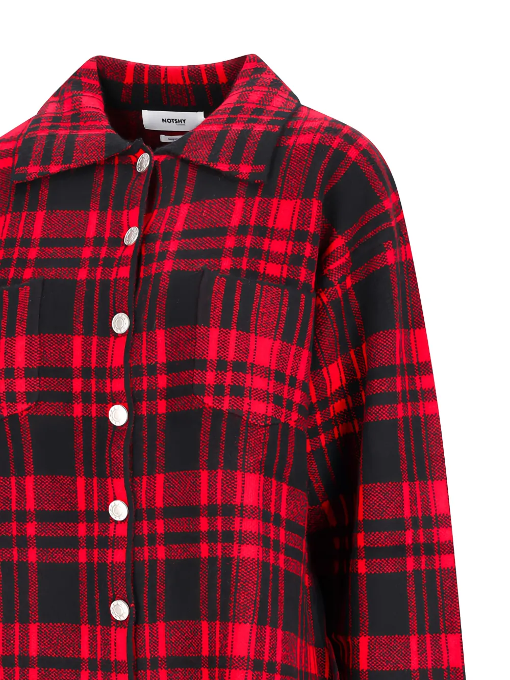 красная кашемировая рубашка в клетку с застежкой на пуговицы и нагрудными карманами