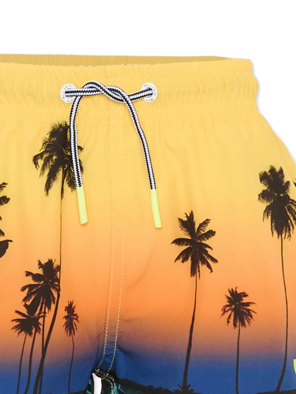 желтые разноцветные шорты с принтом пальмы, застежкой на шнурке, эластичным поясом и нашивкой с логотипом