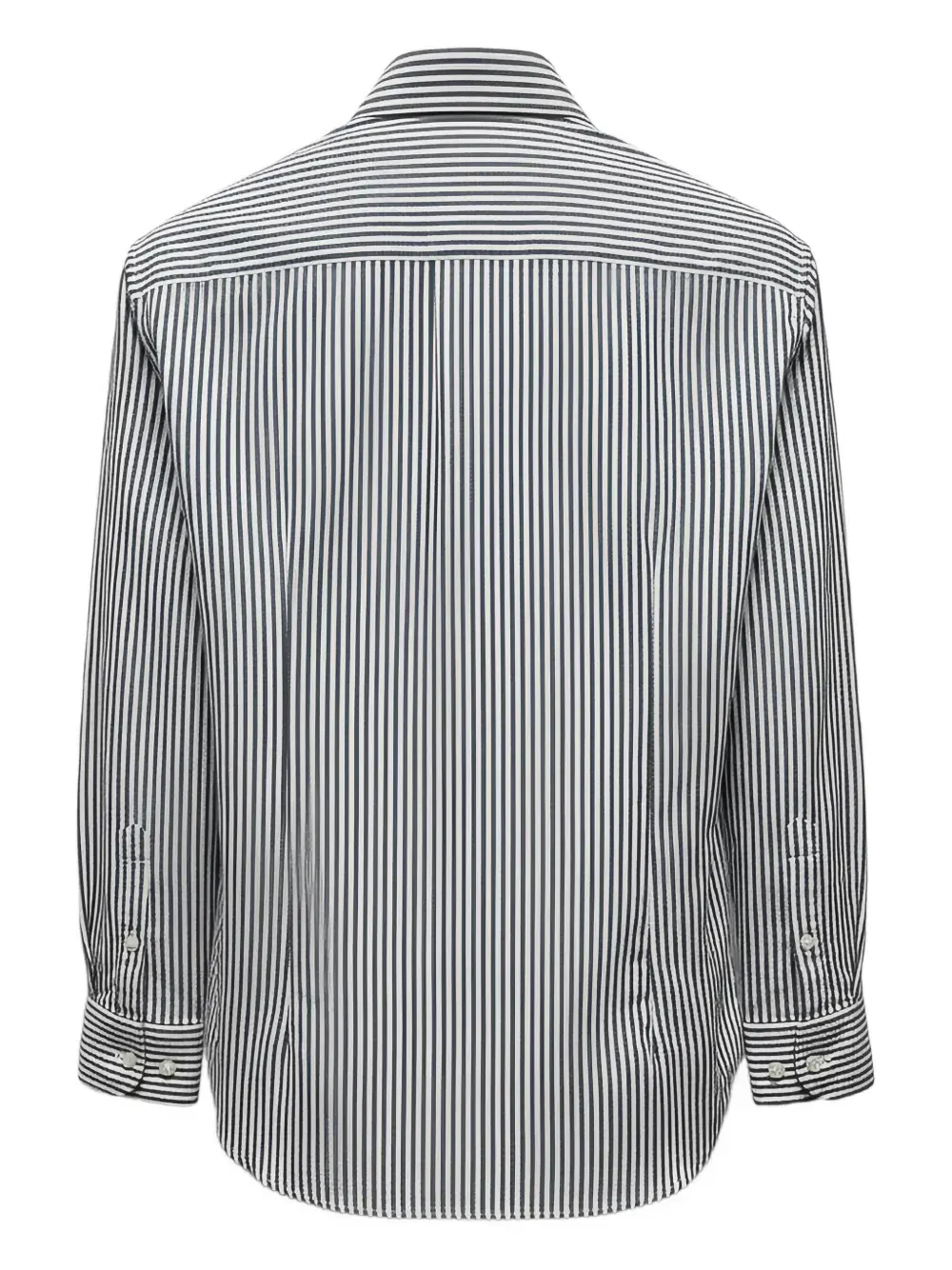 белая полосатая рубашка с застежкой на пуговицы, длинными рукавами, манжетами на пуговицах и классическим воротником