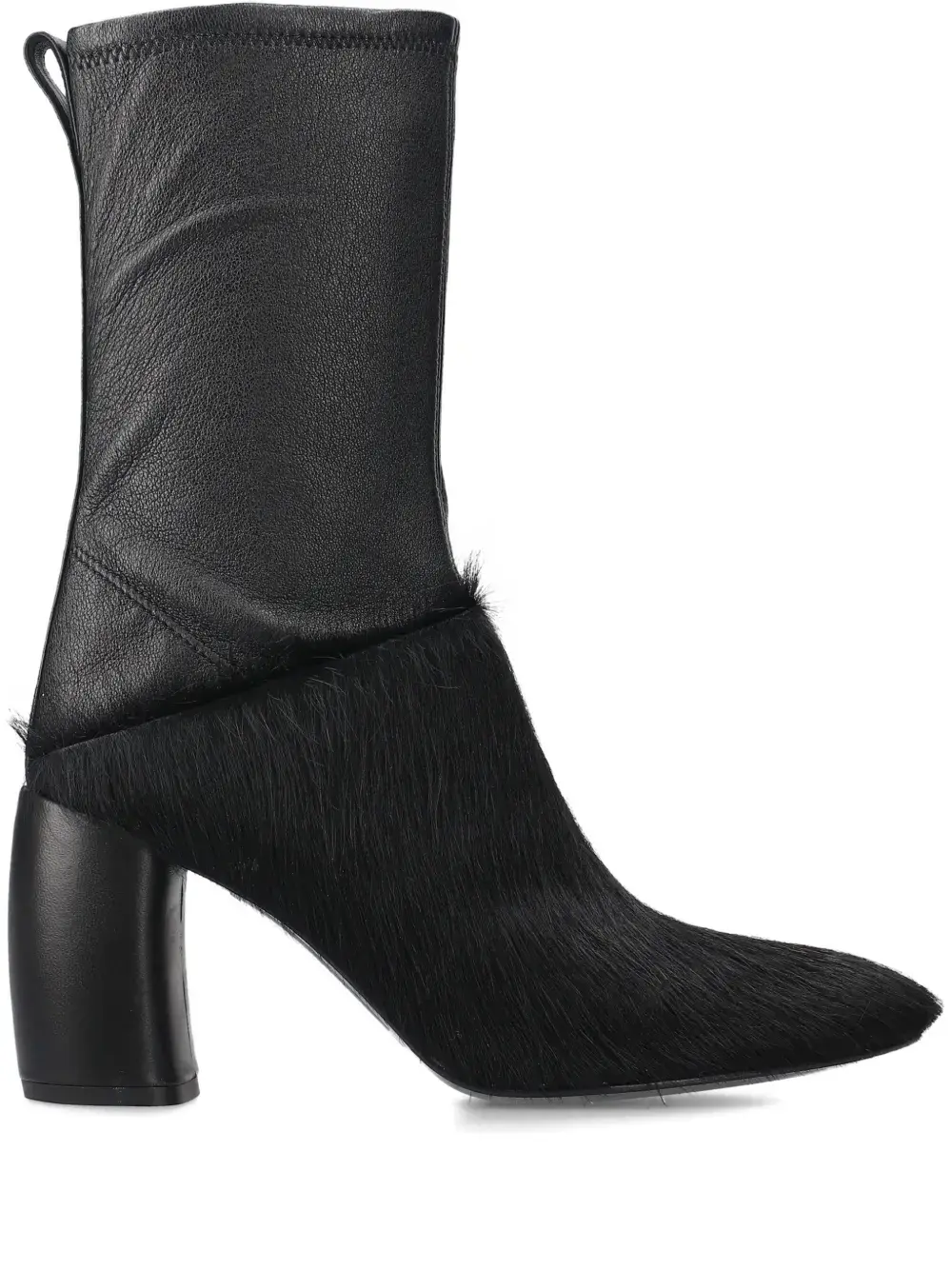 черная овечья кожа, меховая отделка, блочный каблук, эластичная вставка, петля для натягивания