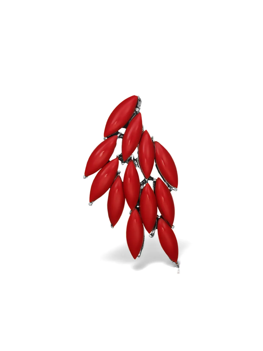 Серебристо-красные вставки симметричной формы в виде крыла, обычное ежедневное использование и воздействие внешних факторов могут уменьшить блеск драгоценных камней и золотых поверхностей.