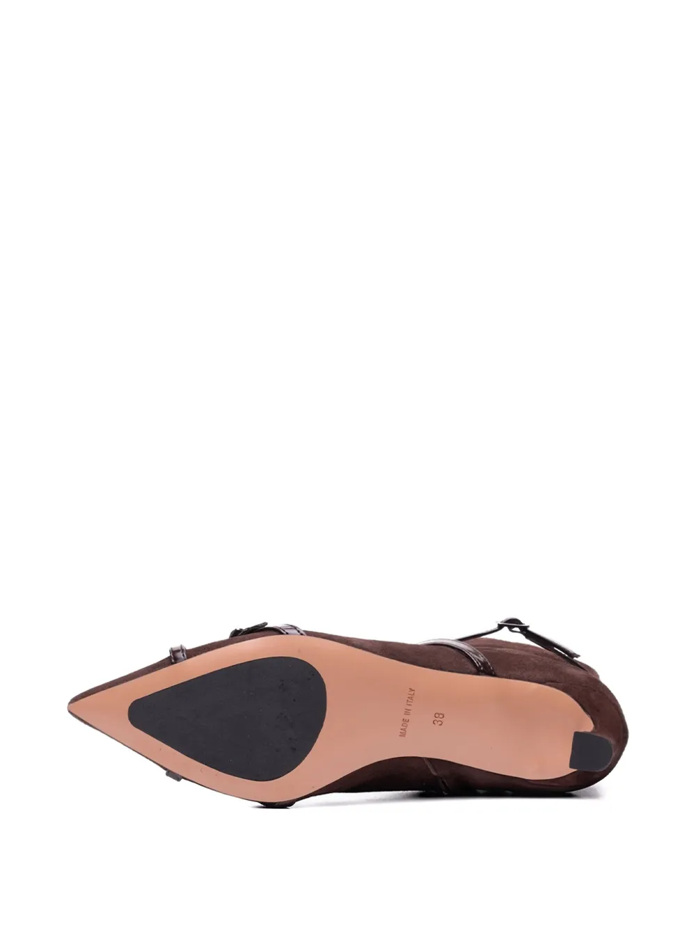 ремешок цвета кофе, застежка-пряжка, острый носок, каблук-колодка