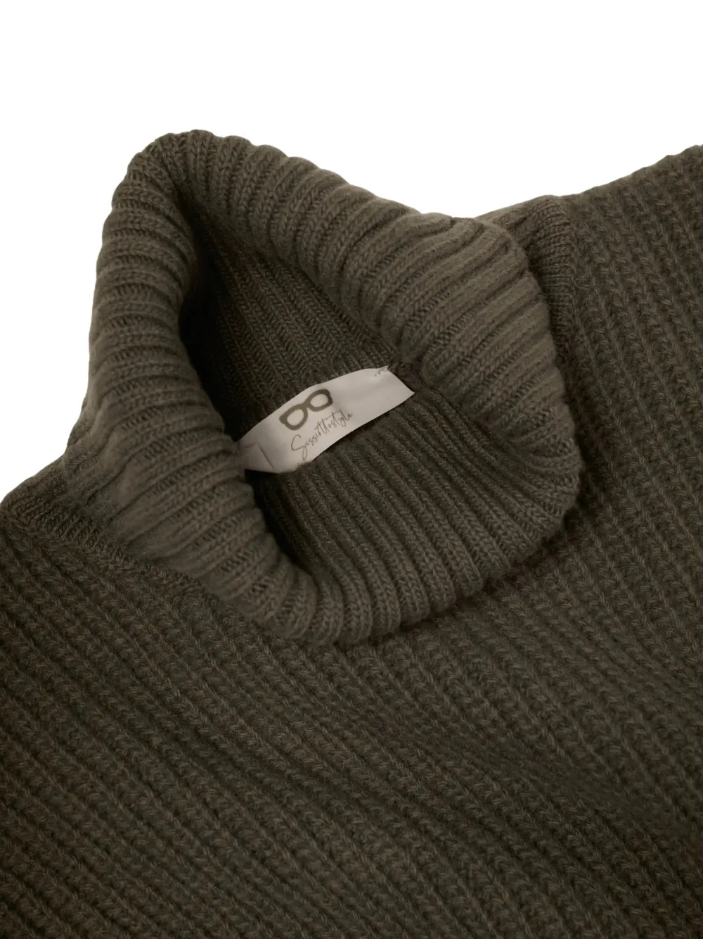 вязаный свитер цвета военный зеленый с воротником гольф в рубчик