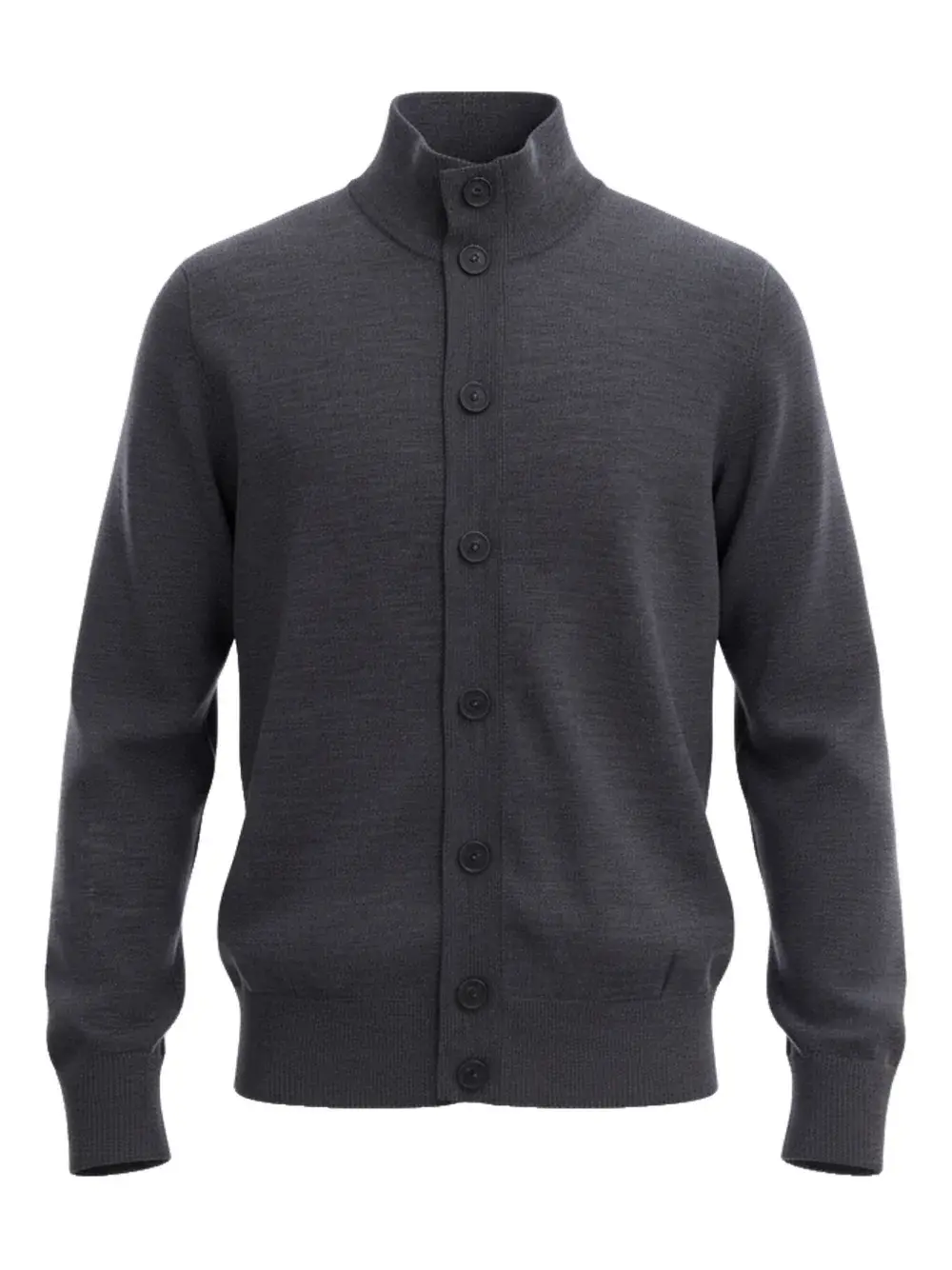 серый шерстяной кардиган на пуговицах с высоким воротником, длинными рукавами, ребристым подолом и ребристыми манжетами