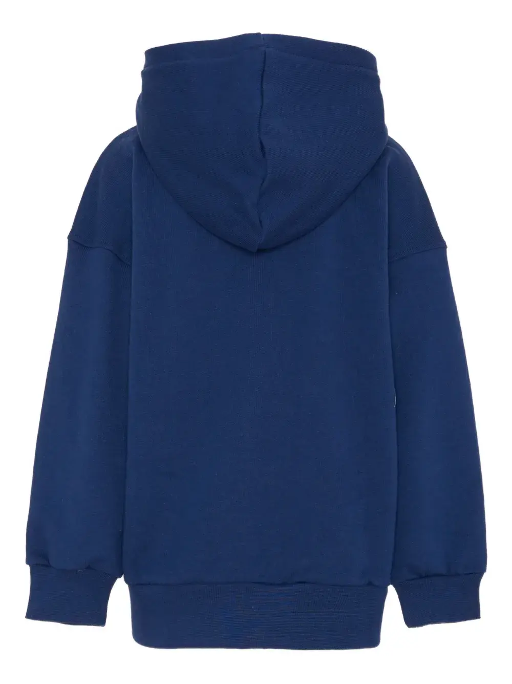синий худи с капюшоном, застежкой-молнией, длинными рукавами и передним карманом