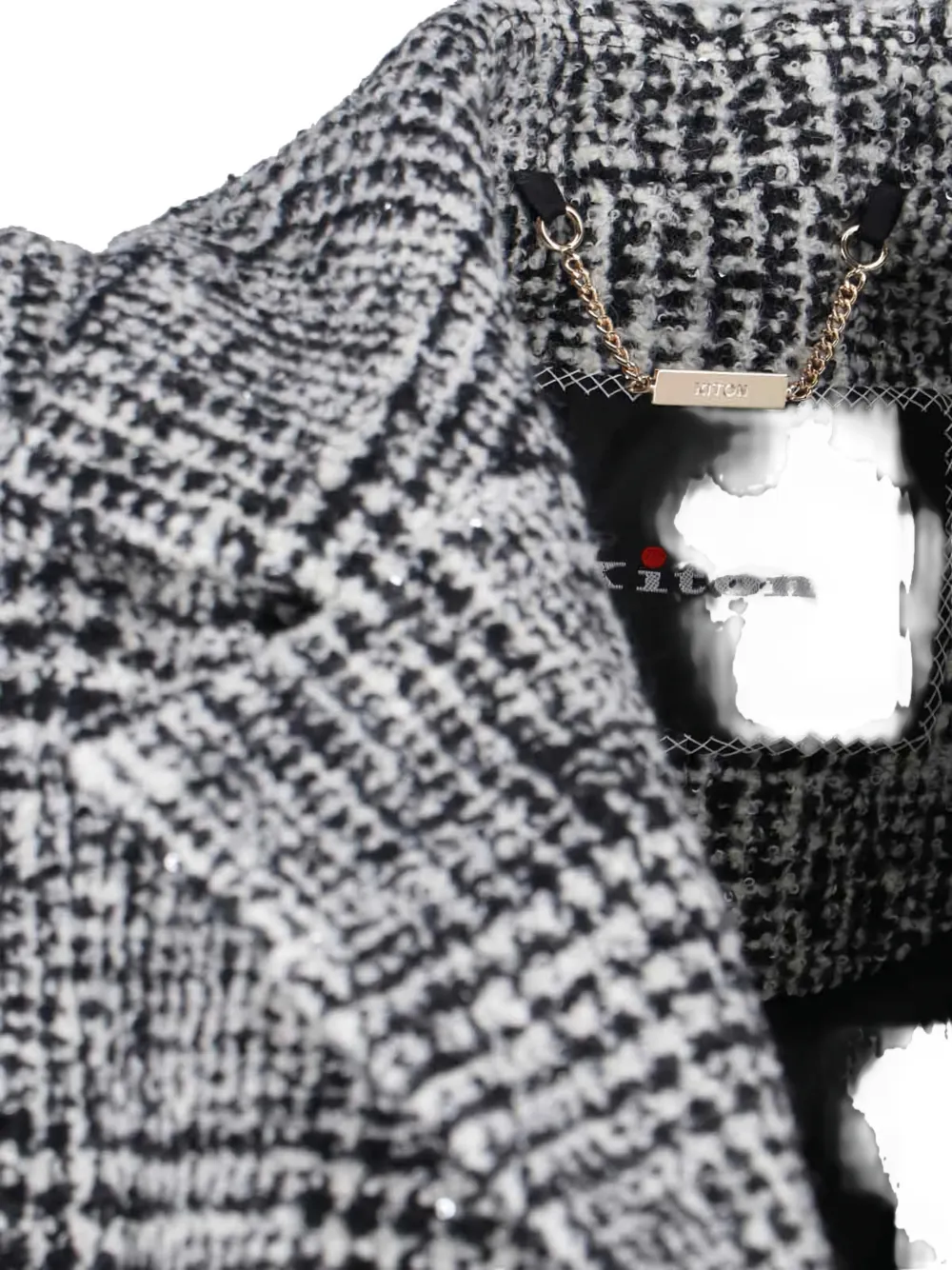 белый пиджак в клетку на одной пуговице с застёжкой и длинными рукавами