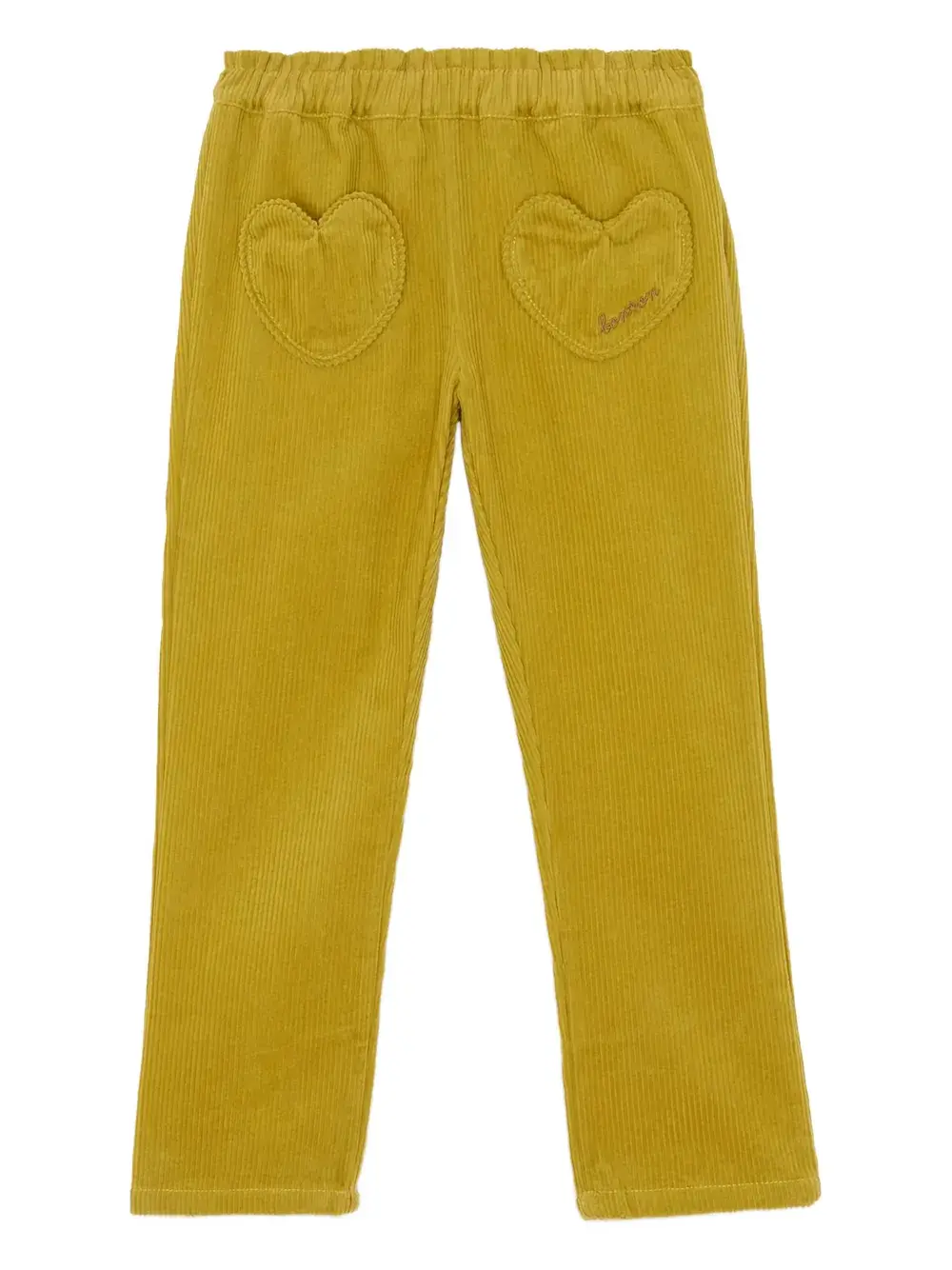 зеленый вельвет с текстурой, деталь в виде сердца, логотип, эластичный пояс, накладной карман сзади