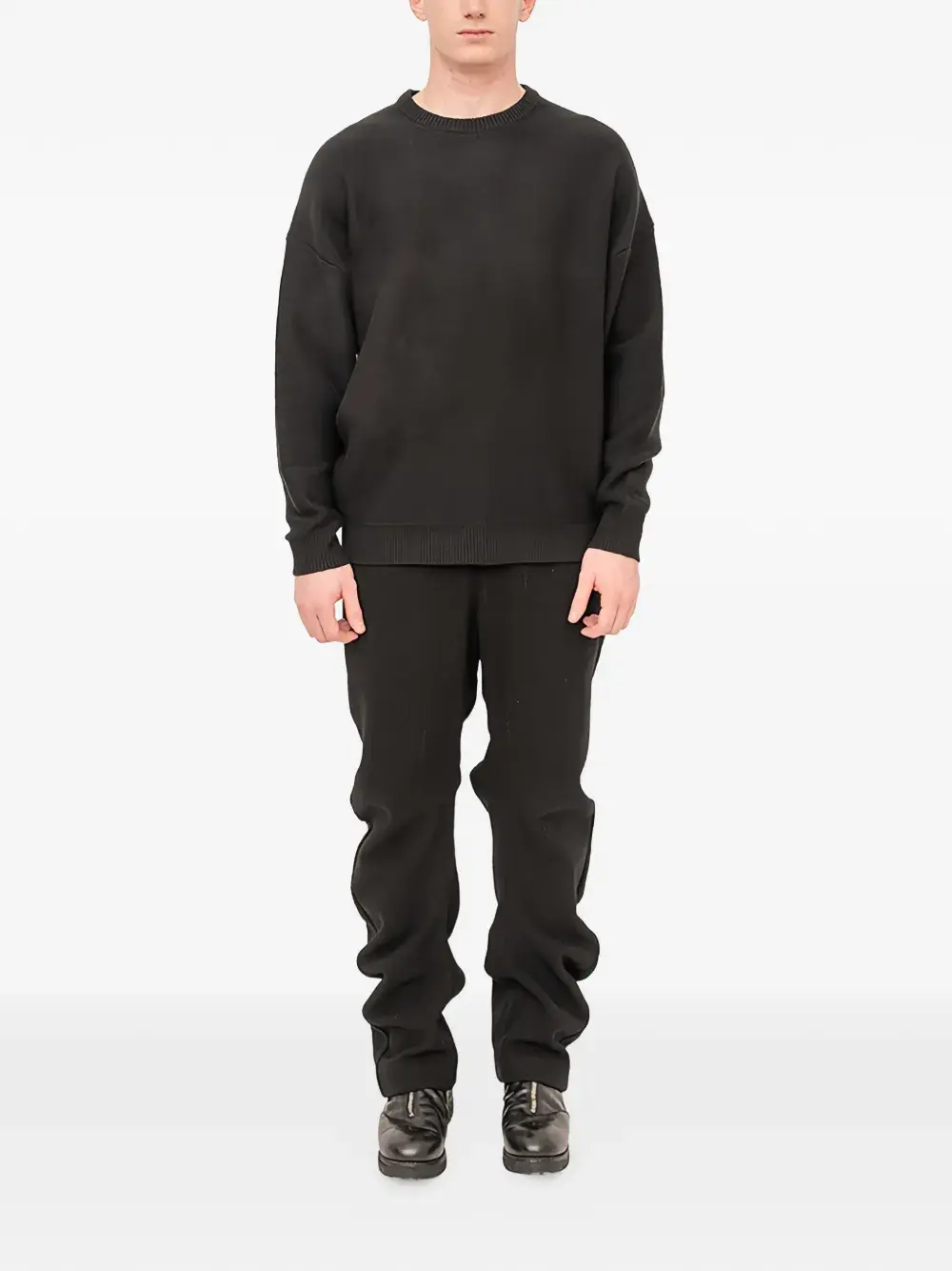 черный вязаный свитер с круглым вырезом, длинными рукавами и ребристыми манжетами