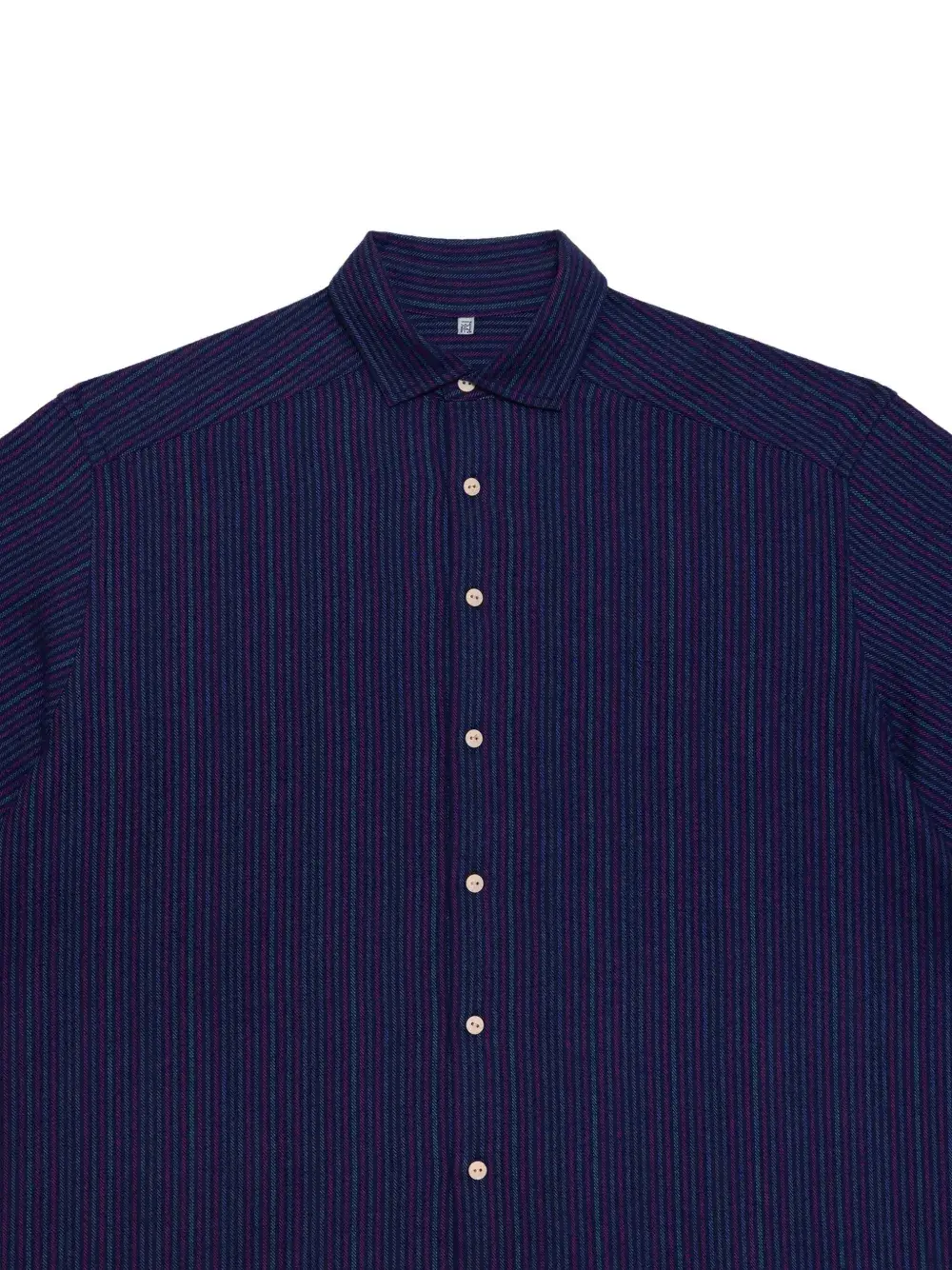 поло с фиолетовой полосатой расцветкой, отложным воротником, застёжкой на пуговицы и длинными рукавами