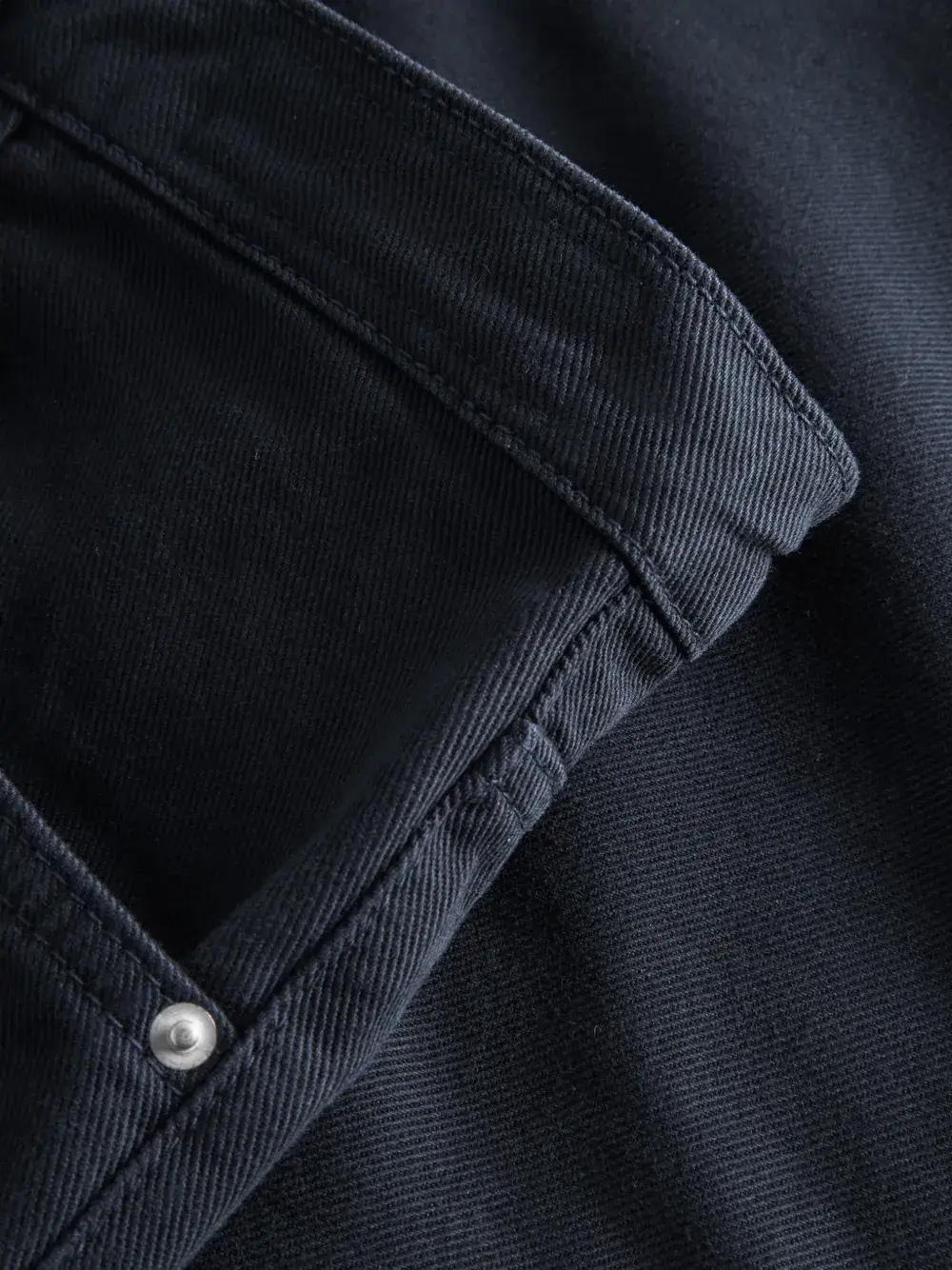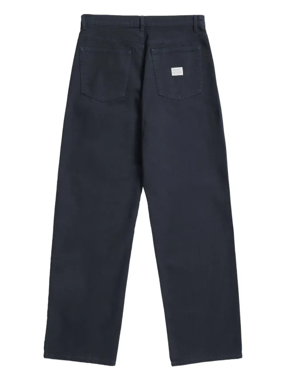 синий с нашивкой логотипа сзади, пять карманов, застёжка на пуговицы, шлёвки для ремня