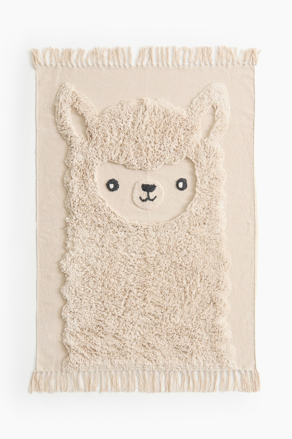 Хлопковый коврик с рисунком пушистой альпаки. Бахрома по коротким сторонам и нескользящая подложка.