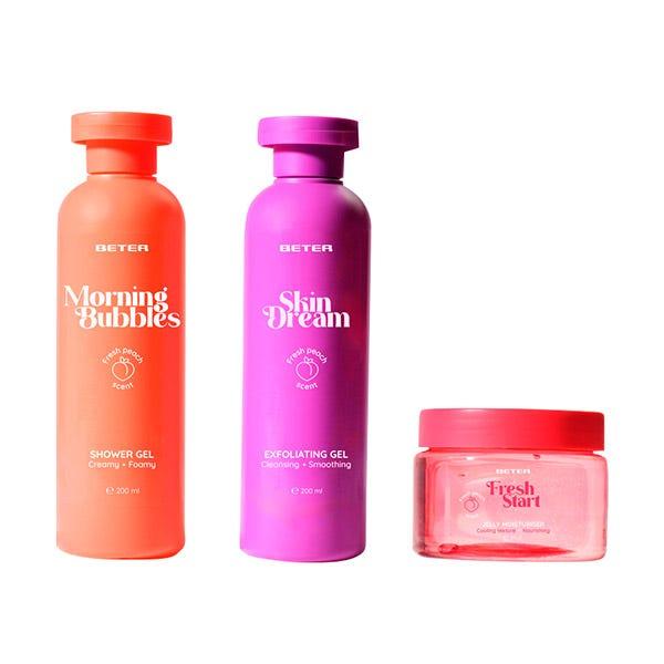 Подарочный набор для пробуждения энергии с удивительными текстурами и восхитительно освежающим ароматом персика.