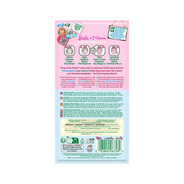 Сияйте, как Барби, с нашей розовой отшелушивающей маской с эффектом пор. Грейпфрут и витамин Е глубоко очищают поры, придавая лицу тонус и свежесть: вы почувствуете себя как во сне!