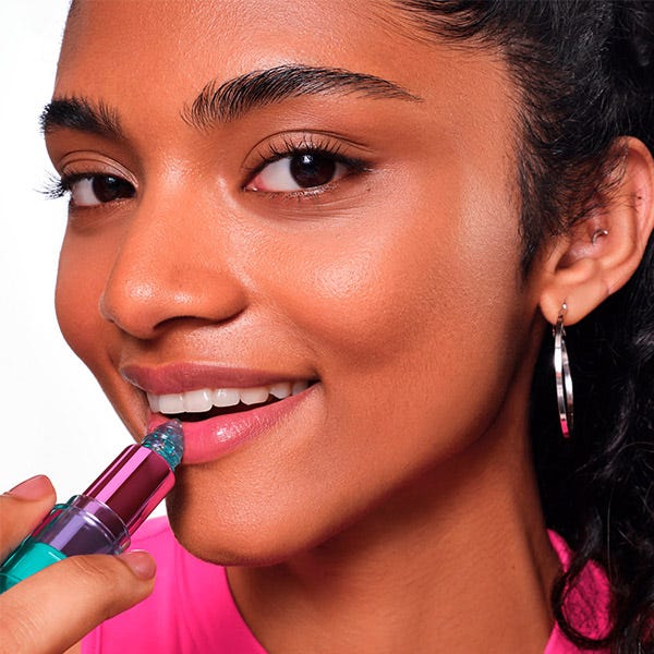 Нанесите помаду на губы, чтобы получить естественный розовый оттенок, который подстраивается под ваши губы. Наносите помаду повторно по мере необходимости, чтобы усилить оттенок и добавить блеск — идеально для корректировки или многослойного нанесения в течение дня.