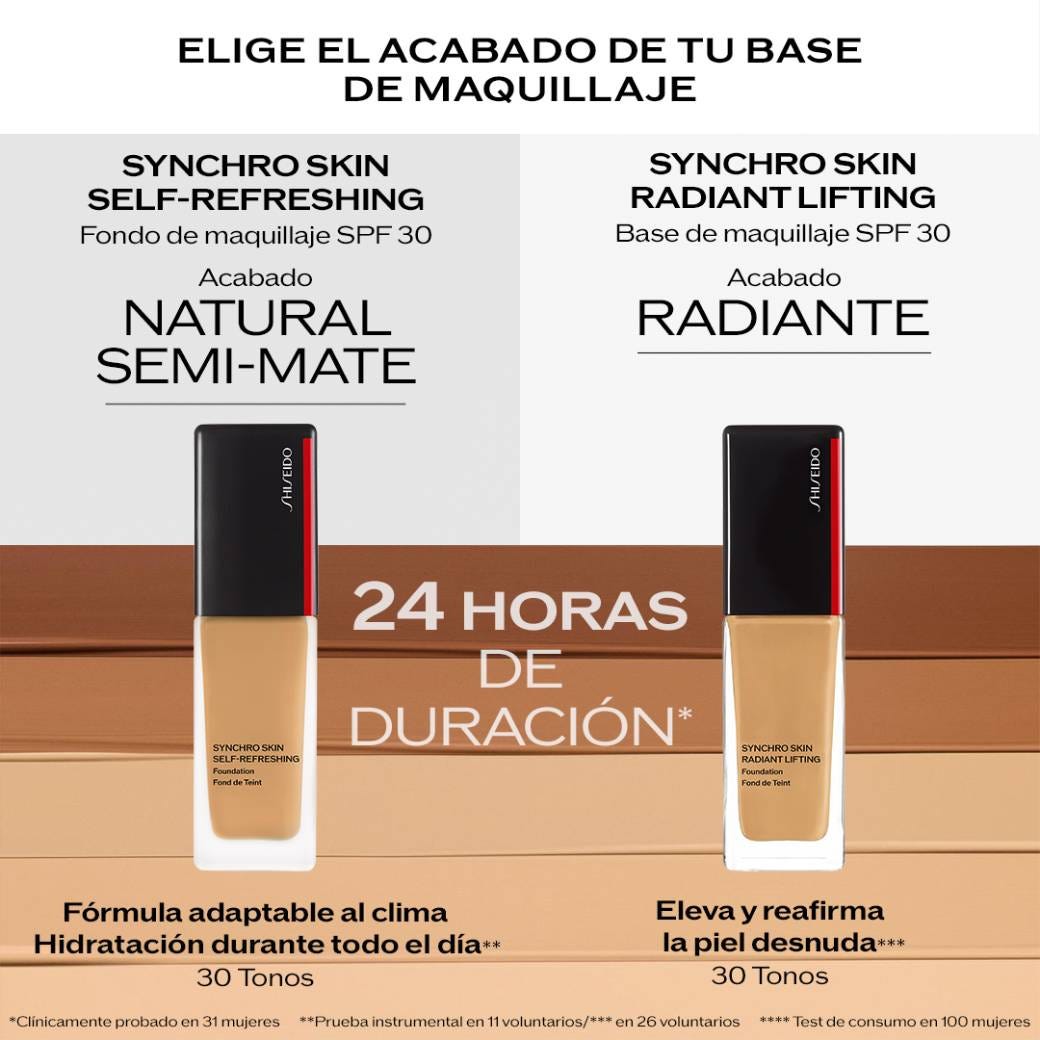Тональная основа Synchro Skin Radiant Lifting обеспечивает покрытие от среднего до плотного с сияющим естественным финишем, который адаптируется к любым условиям освещения. Его усовершенствованная формула мгновенно усиливает сияние кожи, минимизируя появление мелких морщин, выравнивая тон кожи и обеспечивая 24-часовое увлажнение.