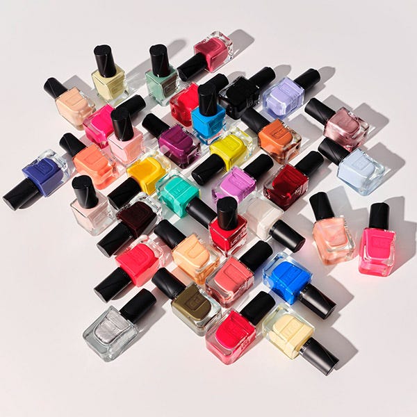 Этилацетат, бутилацетат, нитроцеллюлоза, полиэстер-23, ацетилтрибутилцитрат, изопропиловый спирт, стеаралконийбентонит, масло плодов эвтерпы огородной, сополимер стирола/акрилатов, сополимер адипиновой кислоты, неопентилгликоля и тримеллитового ангидрида, диацетоновый спирт, дипропиленгликольдибензоат, изомасляно-сахарозоацетат, сополимер акрилатов, кремний, мальтол, пентаэритритилтетраизостеарат, триэтоксикаприлилсилан, фосфорная кислота, гидроксид алюминия, CI 15850 (RED 7 LAKE), CI 15880 (RED 34 LAKE), CI 77891 (ДИОКСИД ТИТАНА).