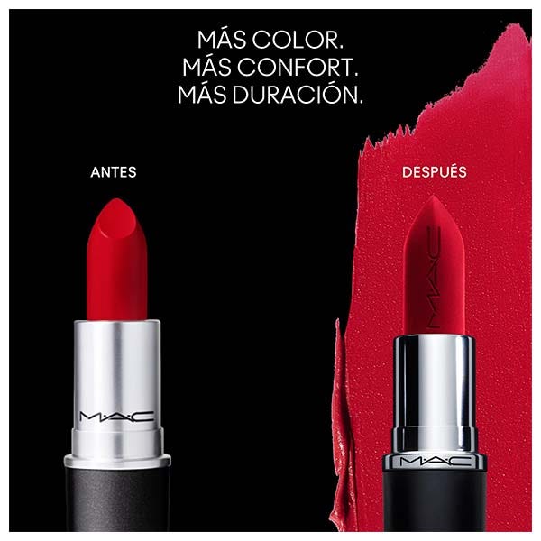 Получите БОЛЕЕ ДЛИТЕЛЬНЫЙ результат с 12 часами стойкого, не выцветающего цвета, который сделает губы заметно полнее с первого ультра-яркого нанесения. Создайте БОЛЕЕ РОСКОШНЫЙ образ с глянцевой упаковкой снаружи и тиснёным логотипом M·A·C внутри. И наконец, будьте БОЛЕЕ ОТВЕТСТВЕННЫ с футляром для помады, содержащим не менее 30% переработанного материала.