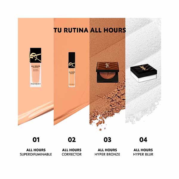 Встряхните закрытый контейнер, чтобы высвободить идеальное количество Используйте бархатную спонжу для нанесения пудры скользящими движениями по всему лицу. Нанесите средство на отдельные участки кожи, чтобы контролировать блеск и скрыть недостатки. Чтобы скорректировать покраснения или желтизну, нанесите средство на отдельные участки кожи после нанесения корректоров. С кистью All Hours Hyper: Извлеките пуховку, встряхните закрытый контейнер и откройте его. Наберите средство на кисть круговыми движениями и нанесите на всё лицо для более лёгкого результата. Нанесение под глаза: После нанесения консилера нанесите щедрый слой пудры под глаза. Оставьте на несколько минут, затем удалите излишки кистью, чтобы придать взгляду сияние и сделать его более совершенным.