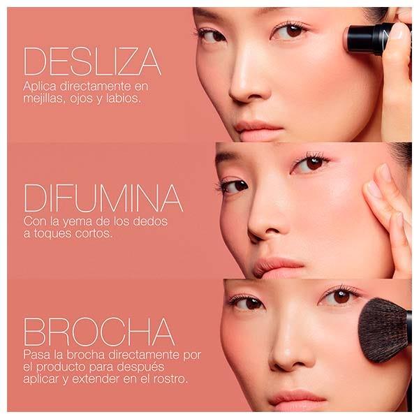 Наносите на щеки, глаза и губы для создания однотонного образа. Или только на одном участке для локального нанесения цвета.