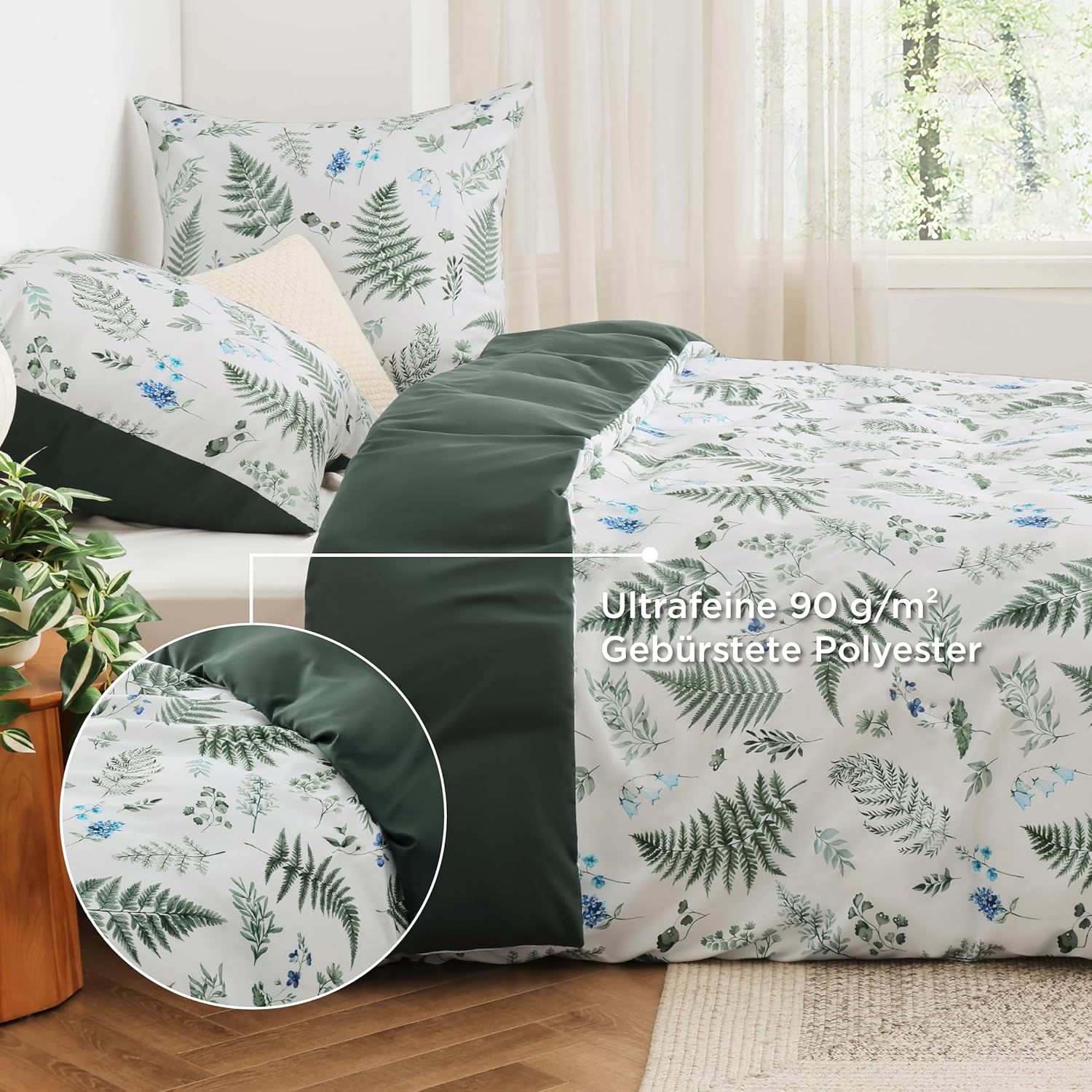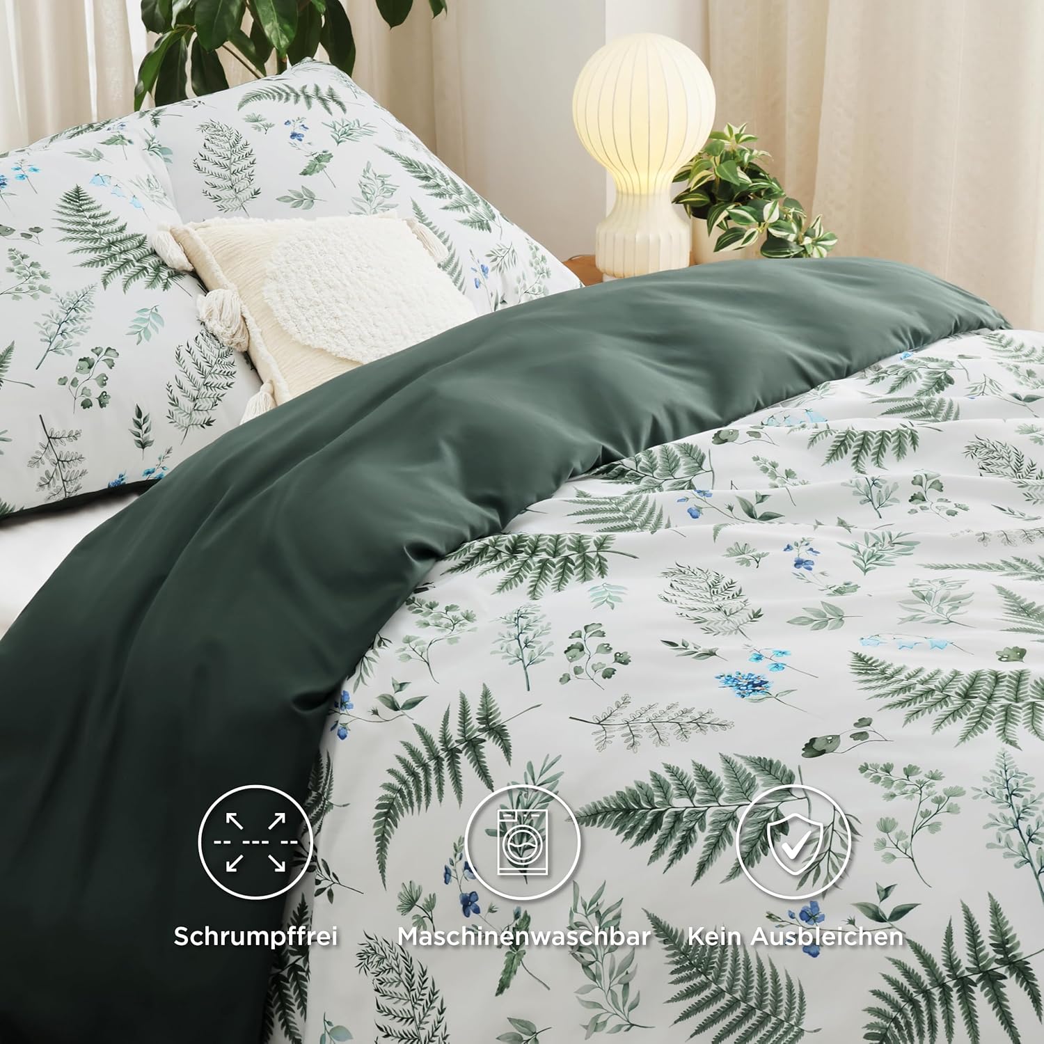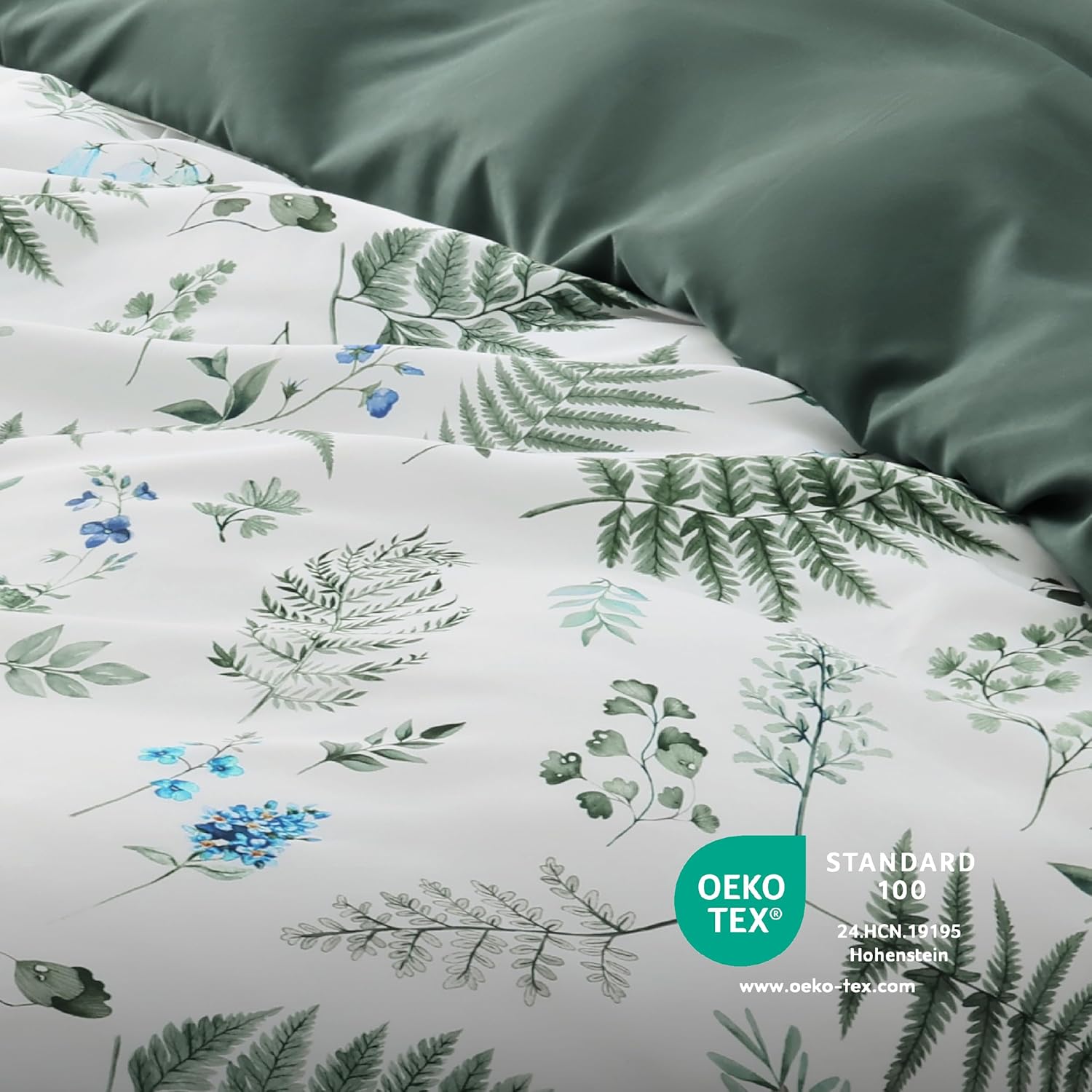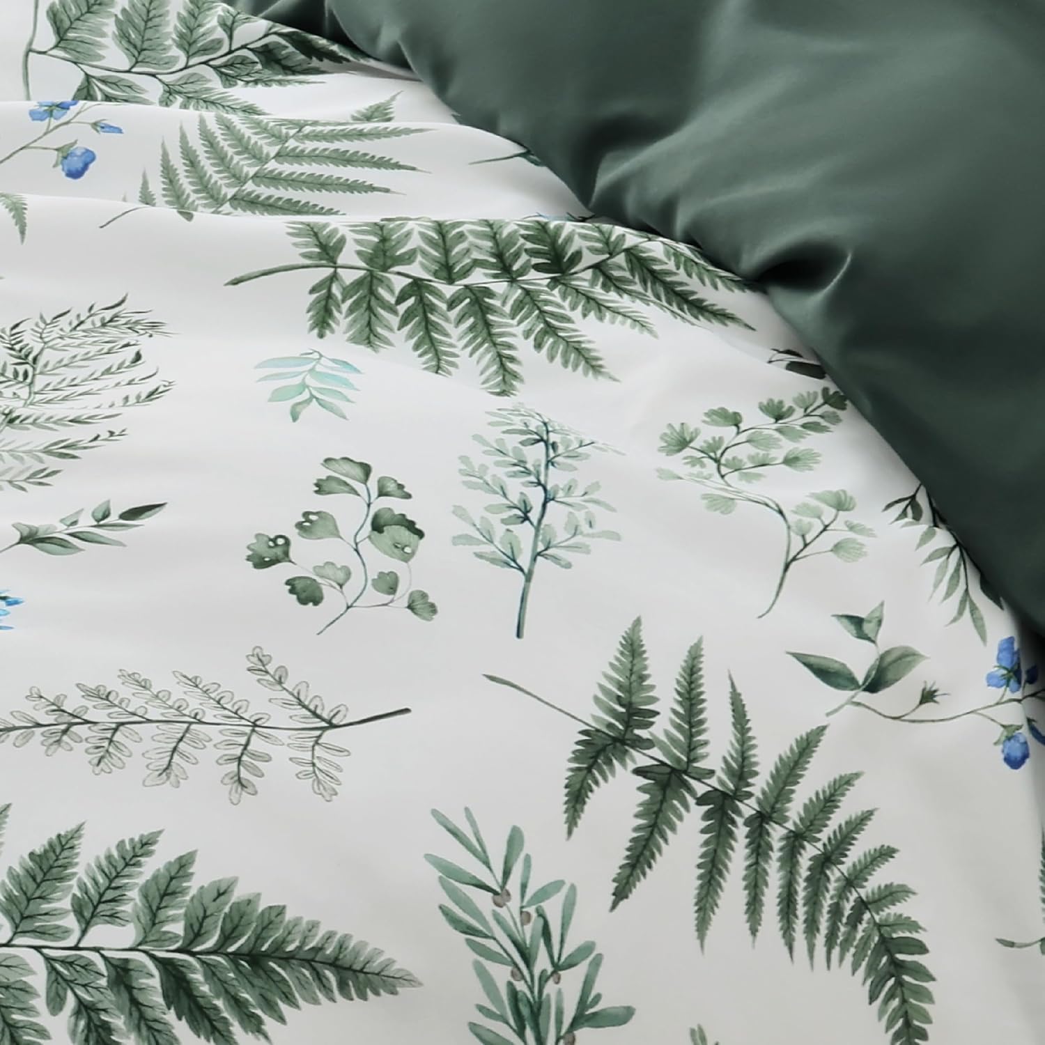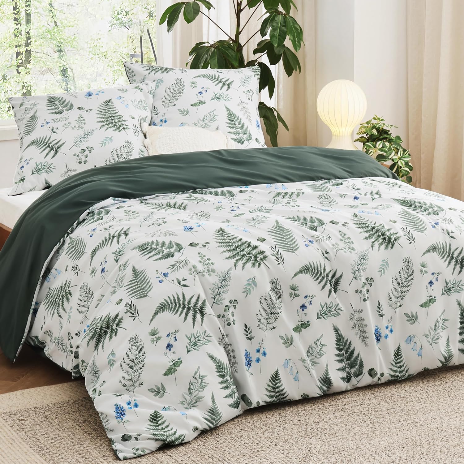 Современный дизайн: Этот двусторонний комплект пододеяльников с освежающим ботаническим (растительным) узором придаст вашей спальне элегантный вид.