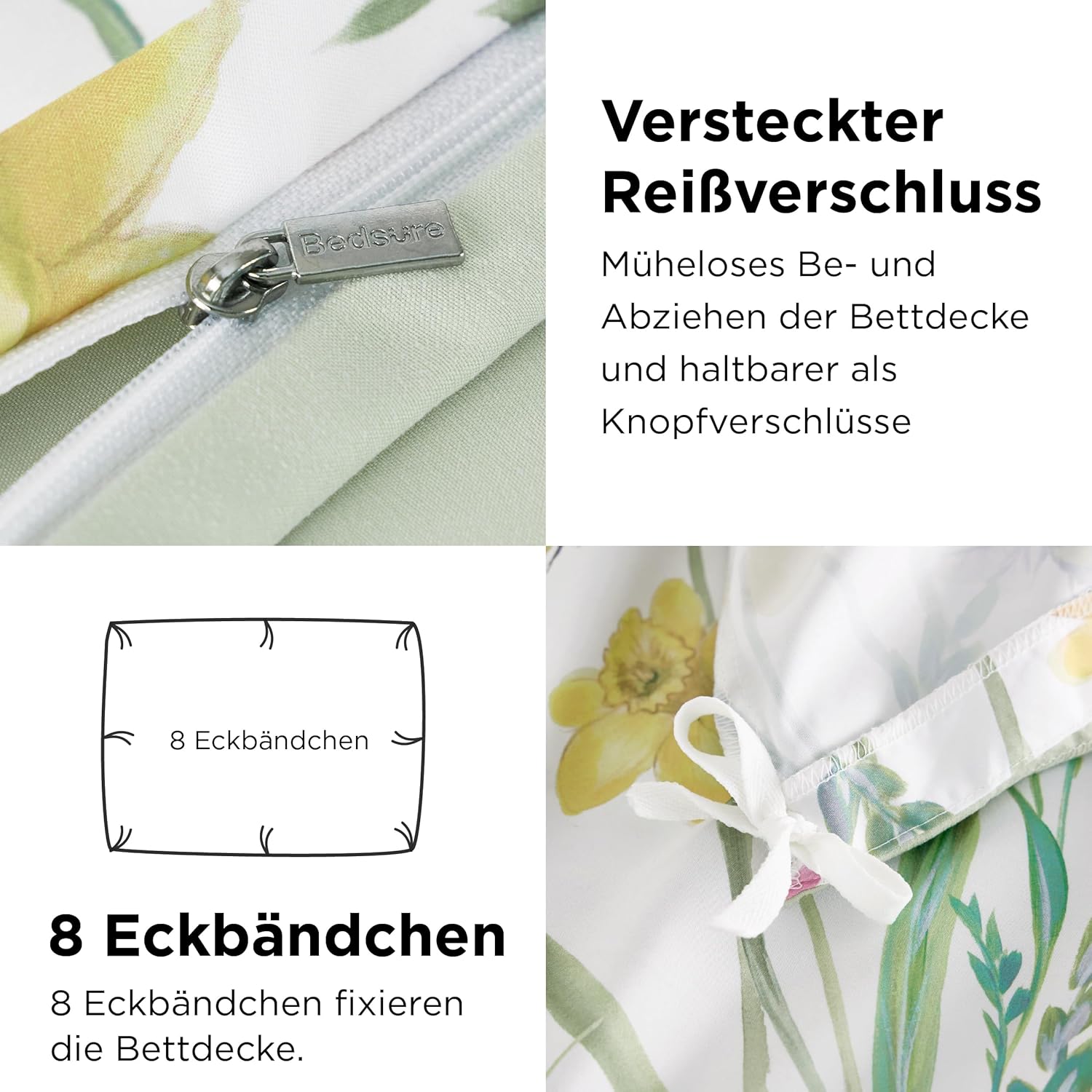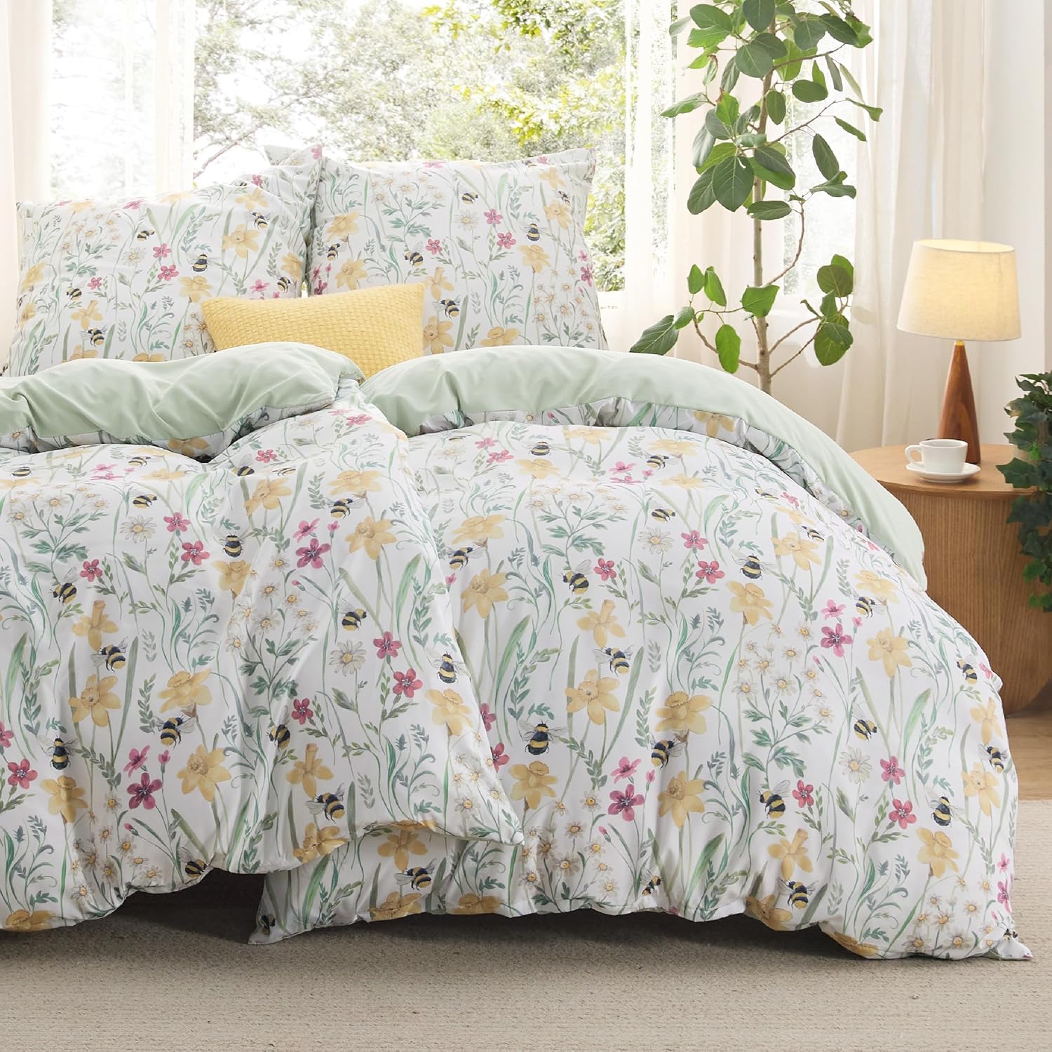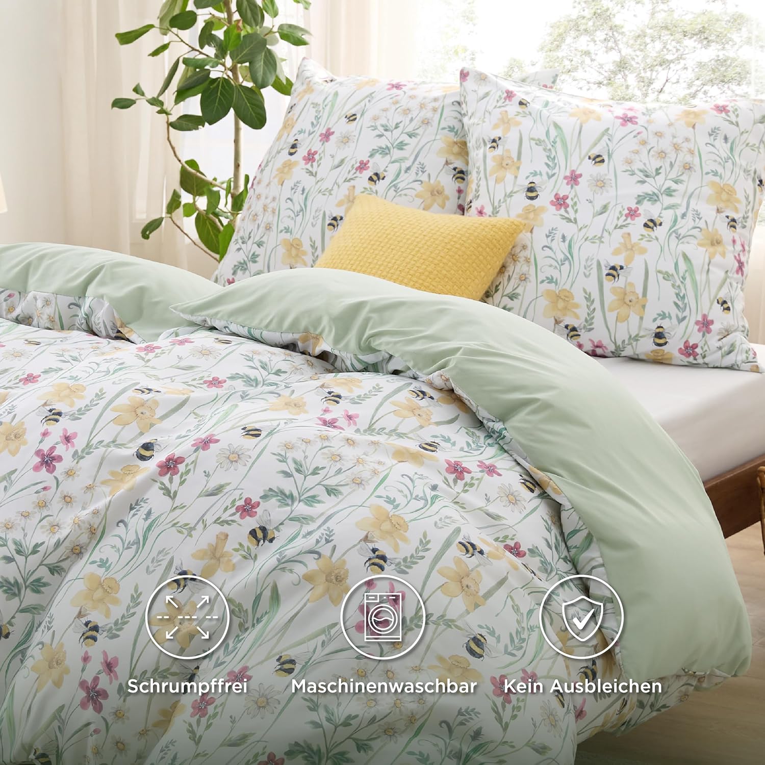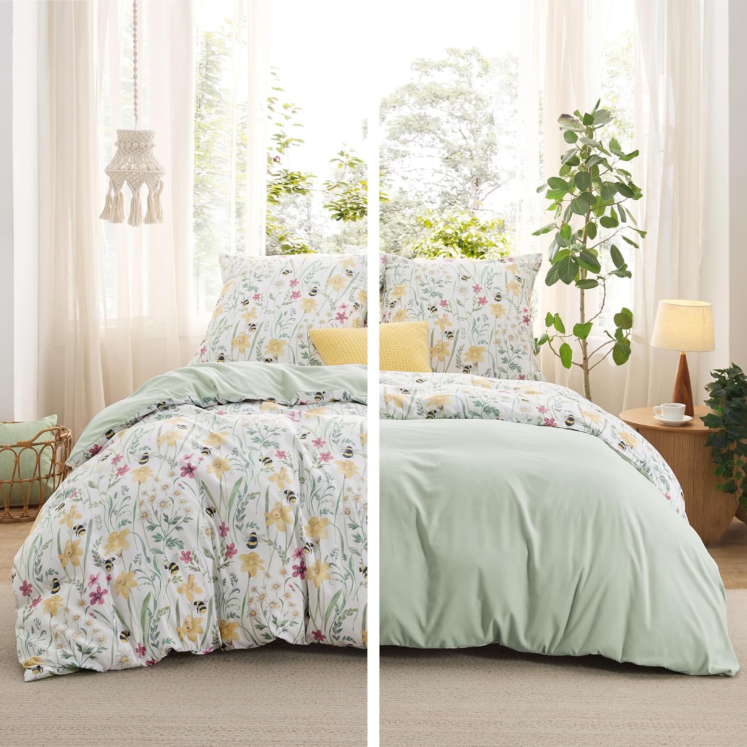 Современный дизайн: Этот двусторонний пододеяльник с зеленым цветочным узором легко дополнит разнообразные стили интерьера вашего дома, добавив милую и элегантную атмосферу в декор вашей комнаты.