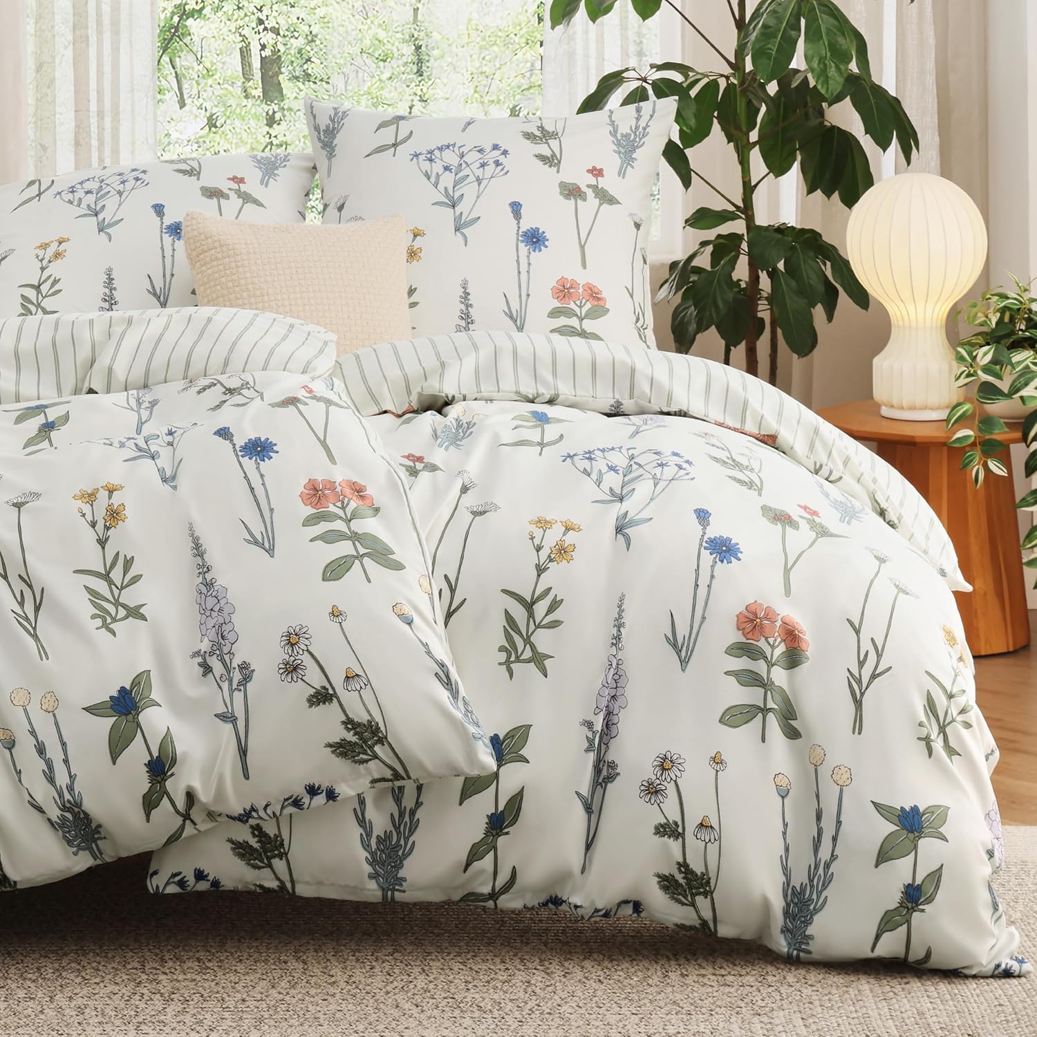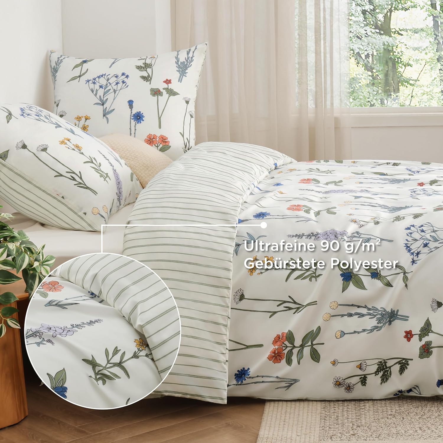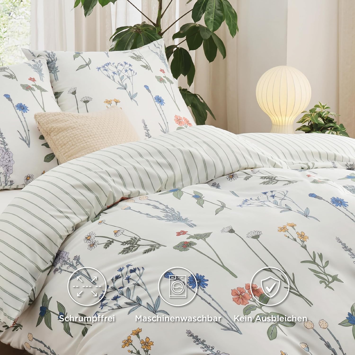 Современный дизайн: Этот двусторонний комплект пододеяльников с ярким цветочным узором привносит освежающую атмосферу в ваше спальное место, которое можно сочетать с любым жилым пространством.