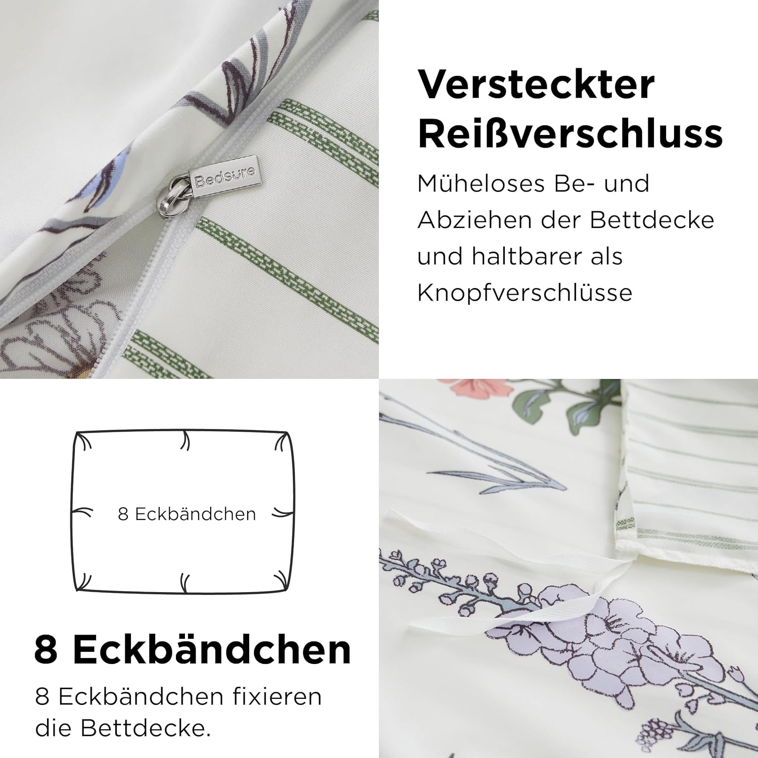 Постельное белье BEDSURE 135 x 200 см. Комплекты 2 пододеяльник 135 x 220 см и 2 наволочками 80 x 80 см. Постельное белье Oeko-Tex с молнией.