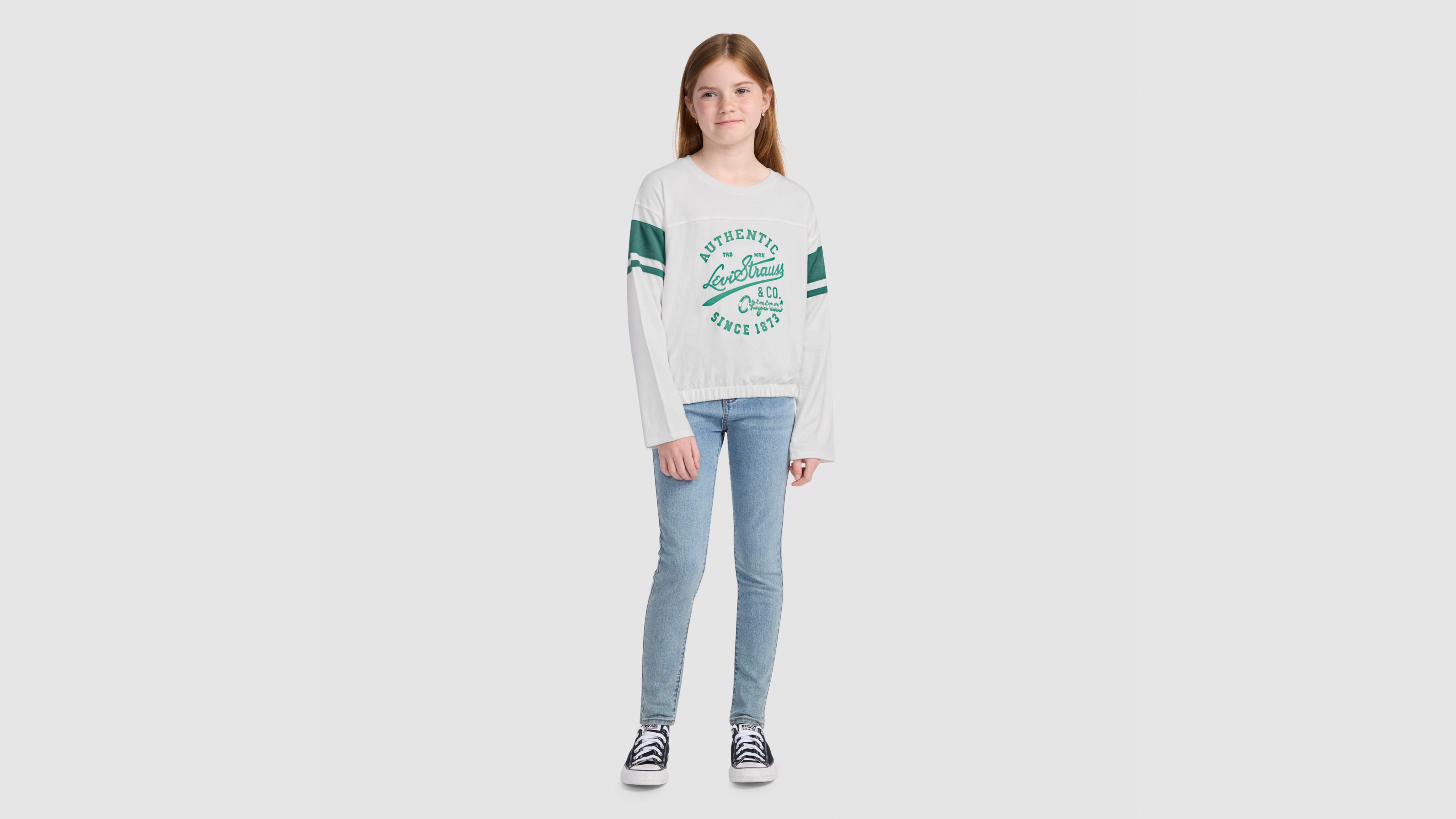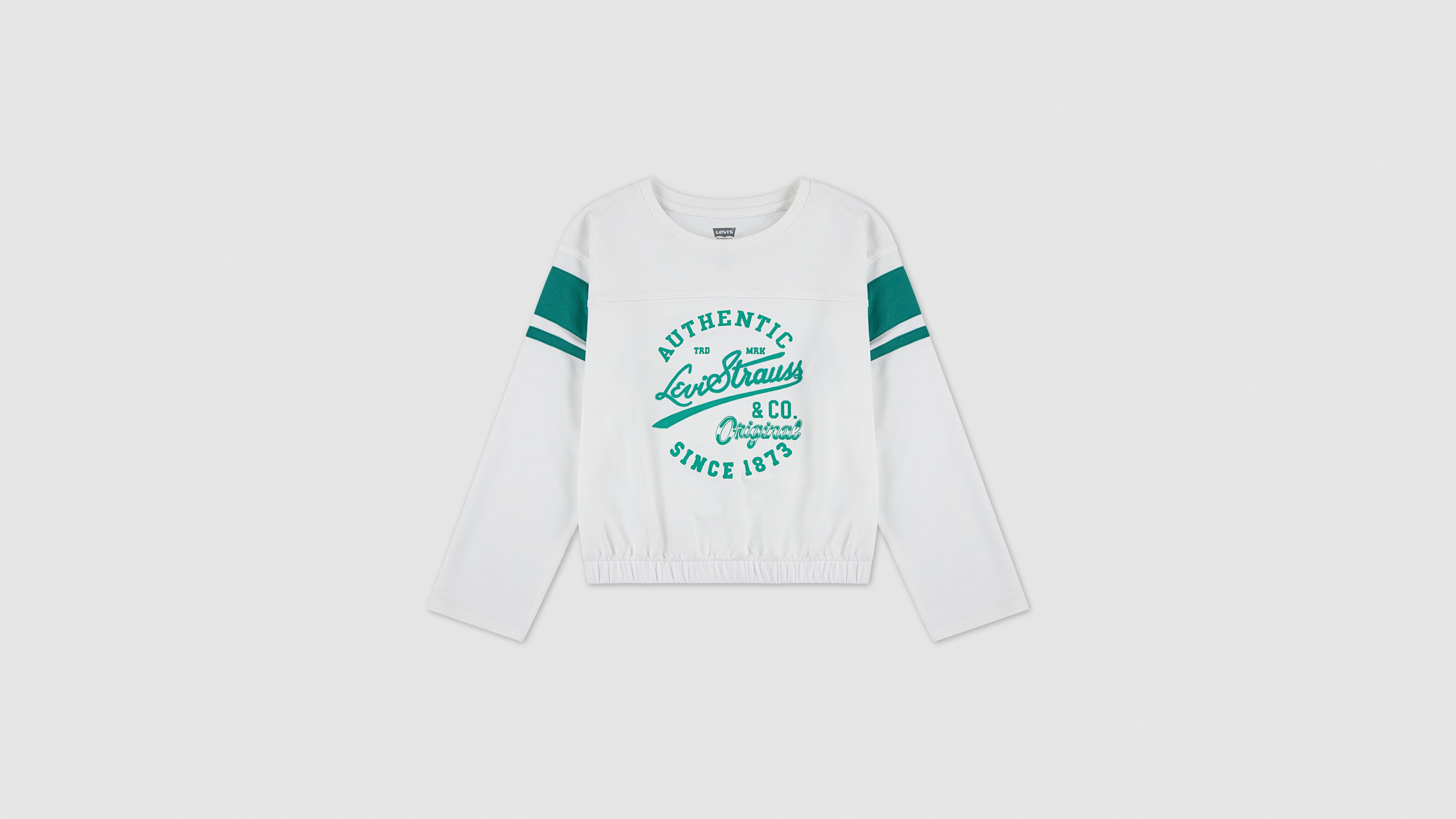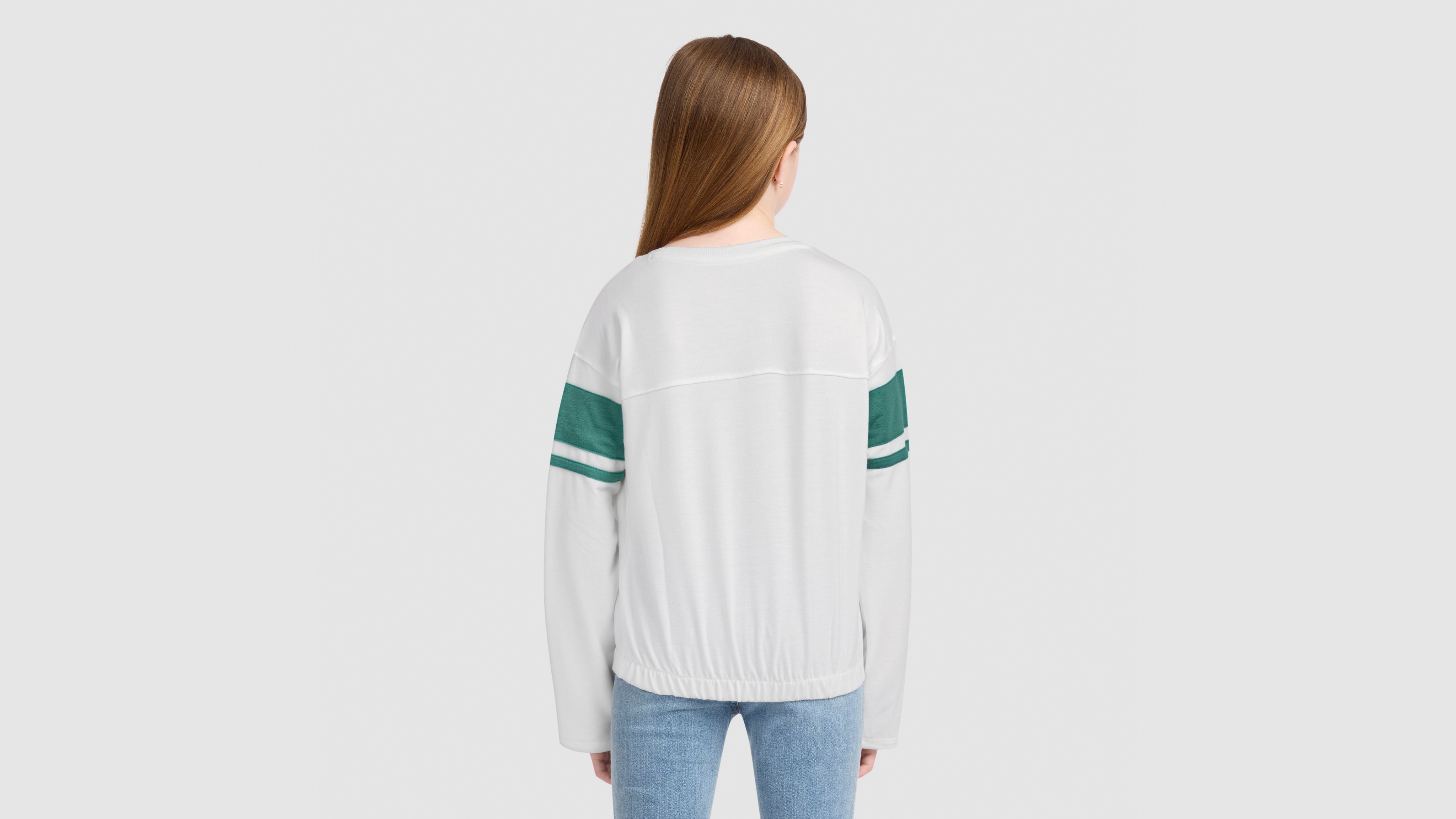 Пора раскрыть свою индивидуальность в этой милой футболке Levi's! Эта футболка с потрясающим принтом в университетском стиле и присборенным подолом гарантированно привлечёт внимание.