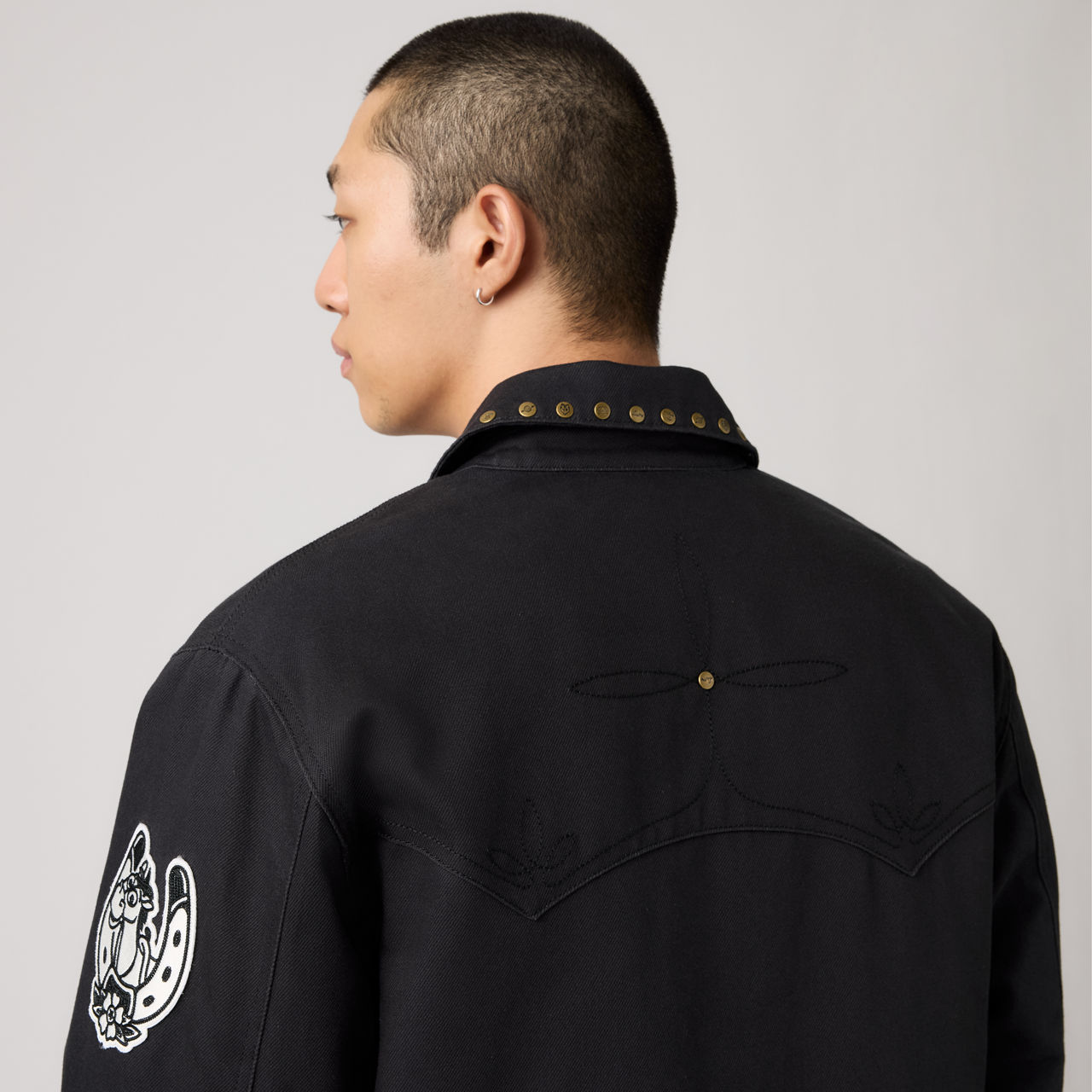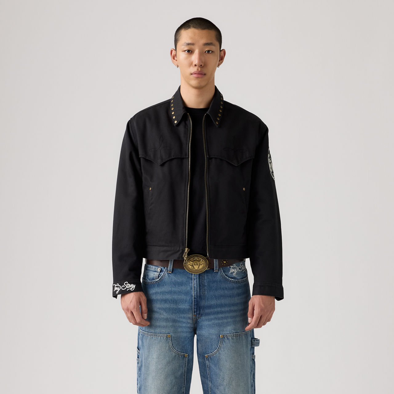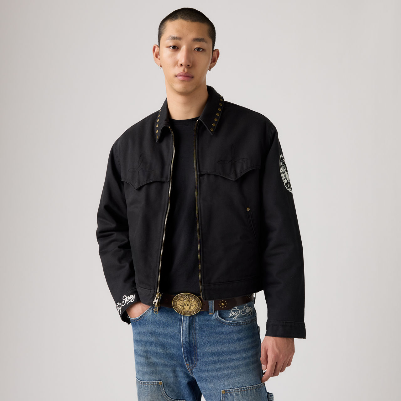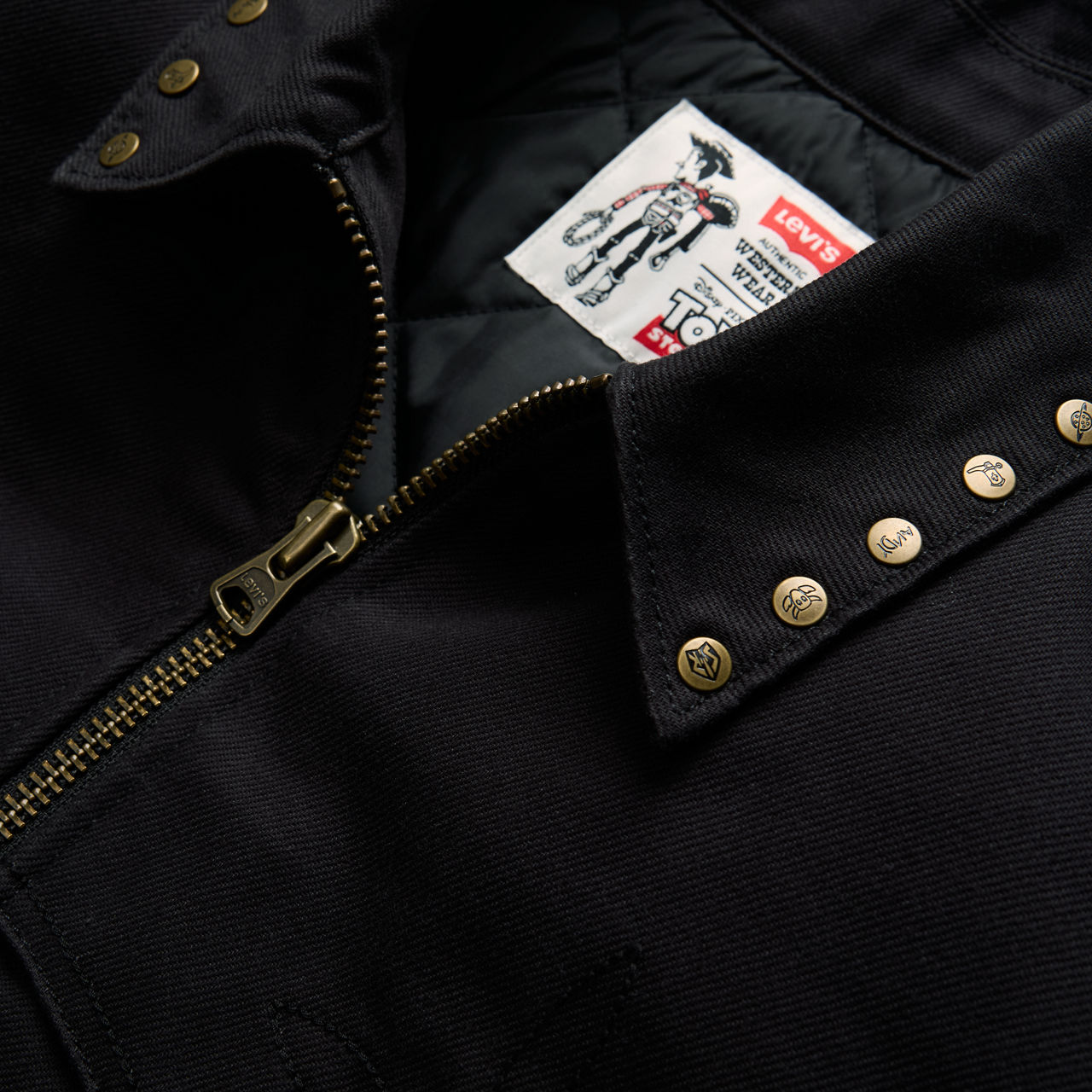 Эта стеганая куртка в стиле вестерн, выпущенная ограниченным тиражом, имеет свободный укороченный силуэт и украшена на воротнике фирменными заклёпками с пятью мотивами, вдохновлёнными фильмом: пряжкой ремня Вуди, логотипом космического рейнджера, эмблемой Планеты пиццы, логотипом ботинка Вуди и изображением кактуса. В довершение всего, куртка украшена вышитой фетровой нашивкой в виде мишени и цепным стежком История игрушек на манжете.