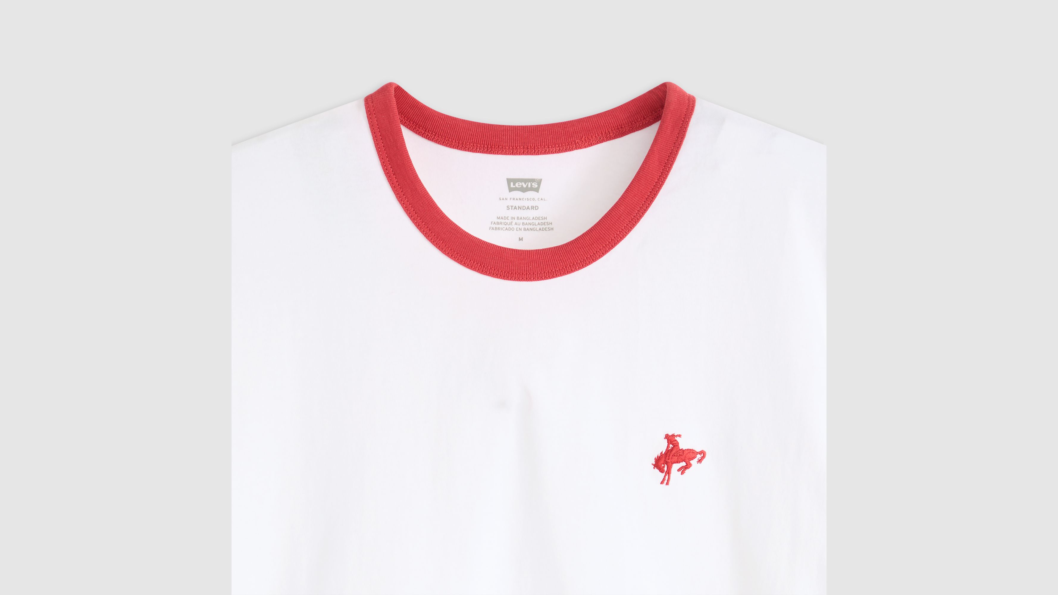 Мы возвращаемся в прошлое с этой ретро-футболкой с вышивкой Ringer. Эта модель имеет классический стандартный крой, воротник и рукава с резинкой, а также дополнена вышивкой Levi's.