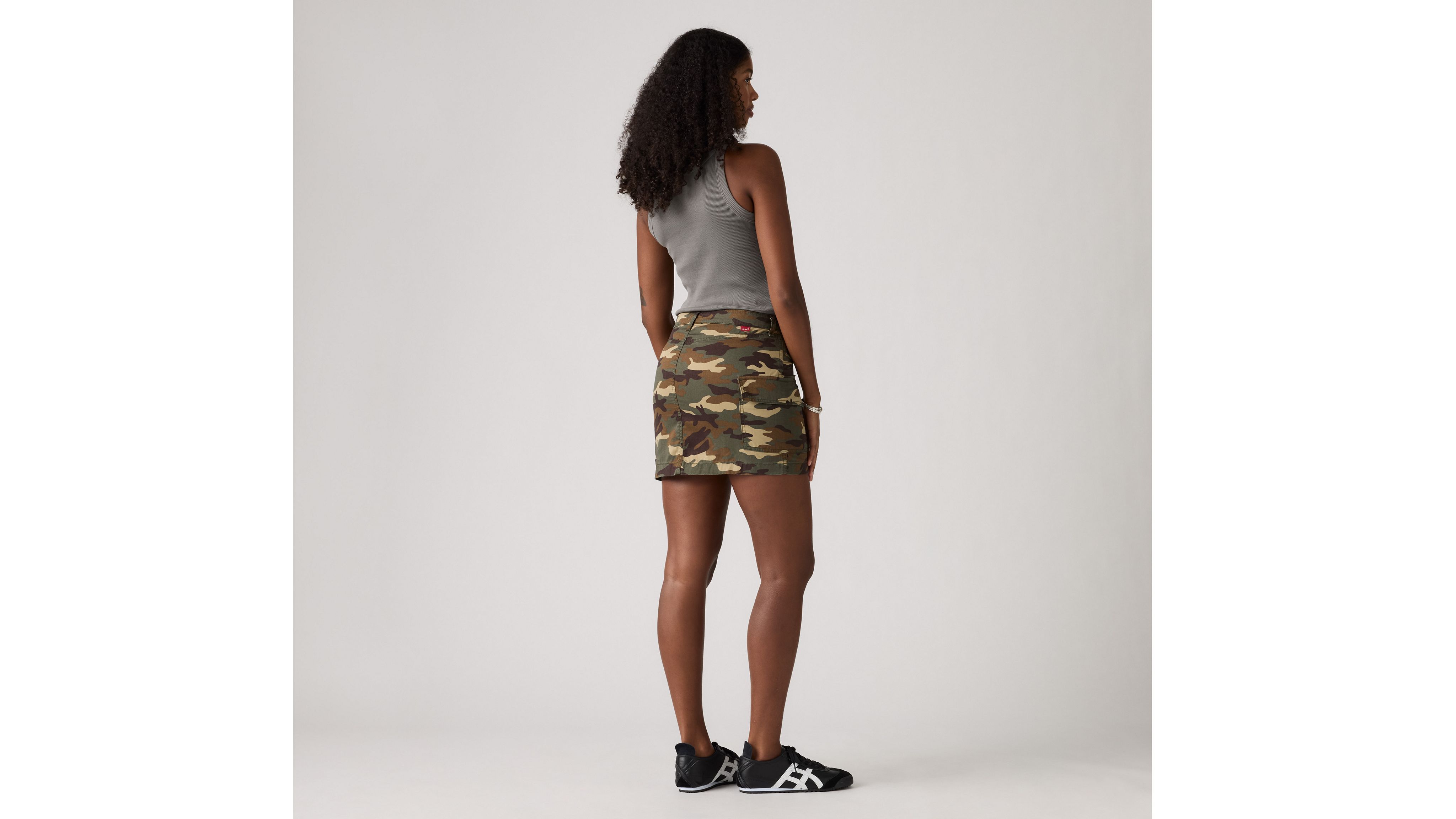 Ваши любимые брюки-карго — в виде юбки. Наша мини-юбка-карго с ультра-подчеркивающей средней посадкой и длиной выше колена отличается большими накладными карманами и непринужденным стилем 90-х.