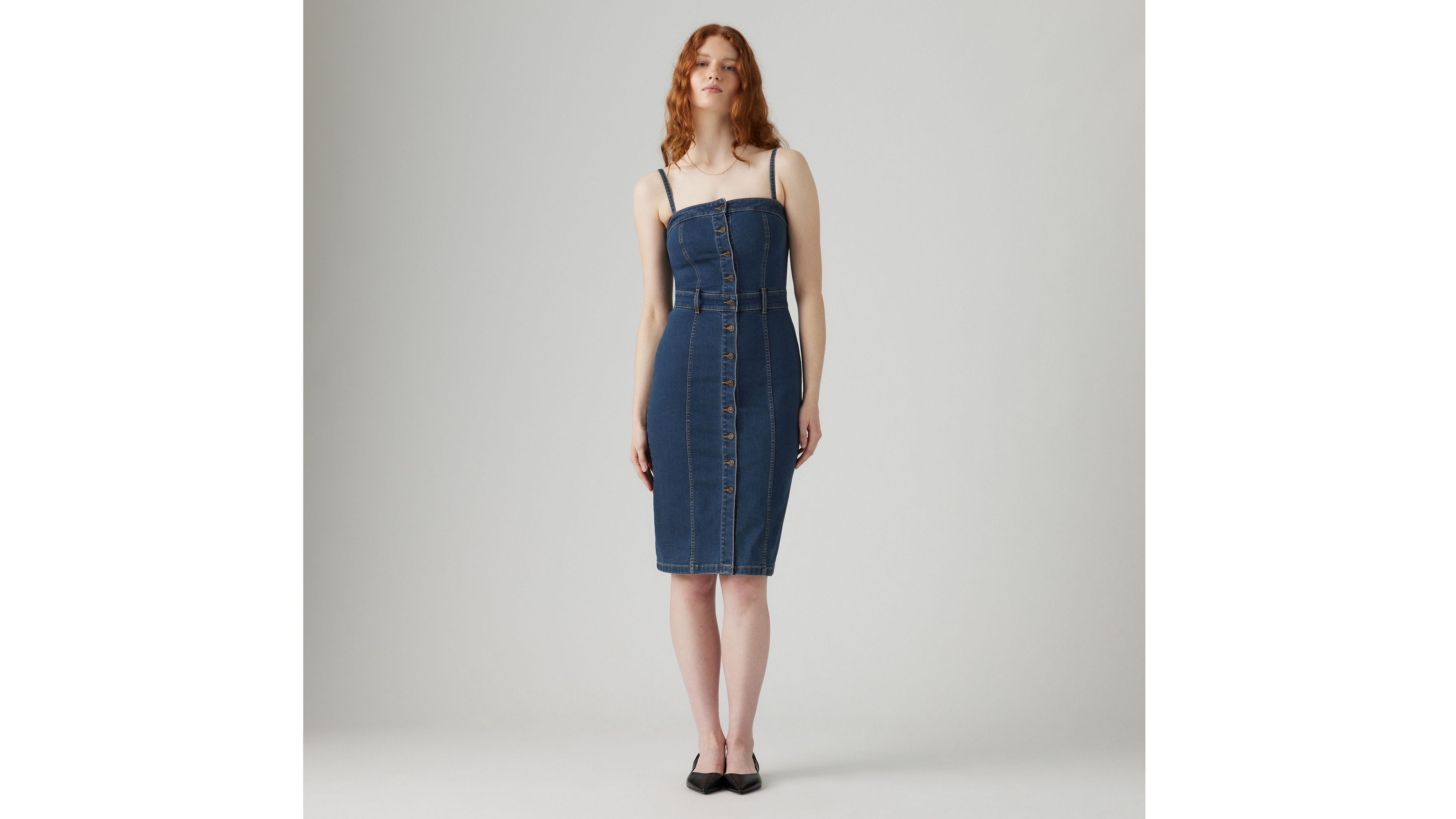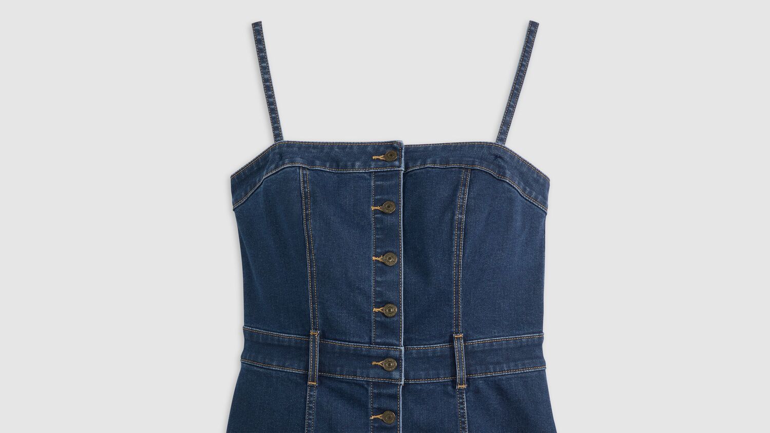 Наше джинсовое платье-бюстье станет неотъемлемой частью вашего гардероба для выходных благодаря своему облегающему крою, подчеркивающему фигуру корсету и длине до колена.