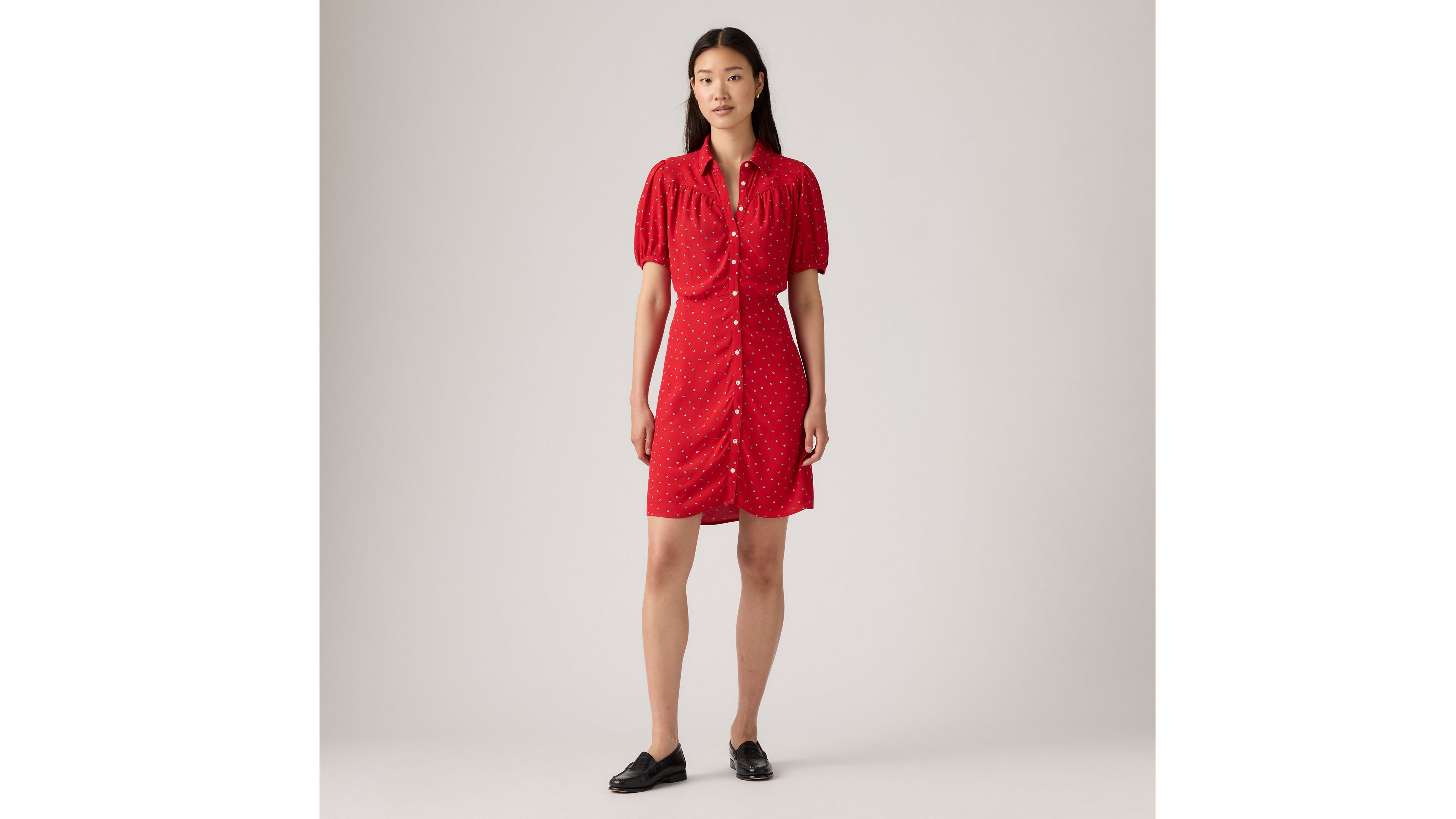 Сдержанное и невероятно удобное мини-платье Lea создано специально для тех дней, когда вам нечего надеть. Оно имеет воротник-стойку, застёжку на пуговицы спереди, короткие рукава и идеальный А-образный силуэт.
