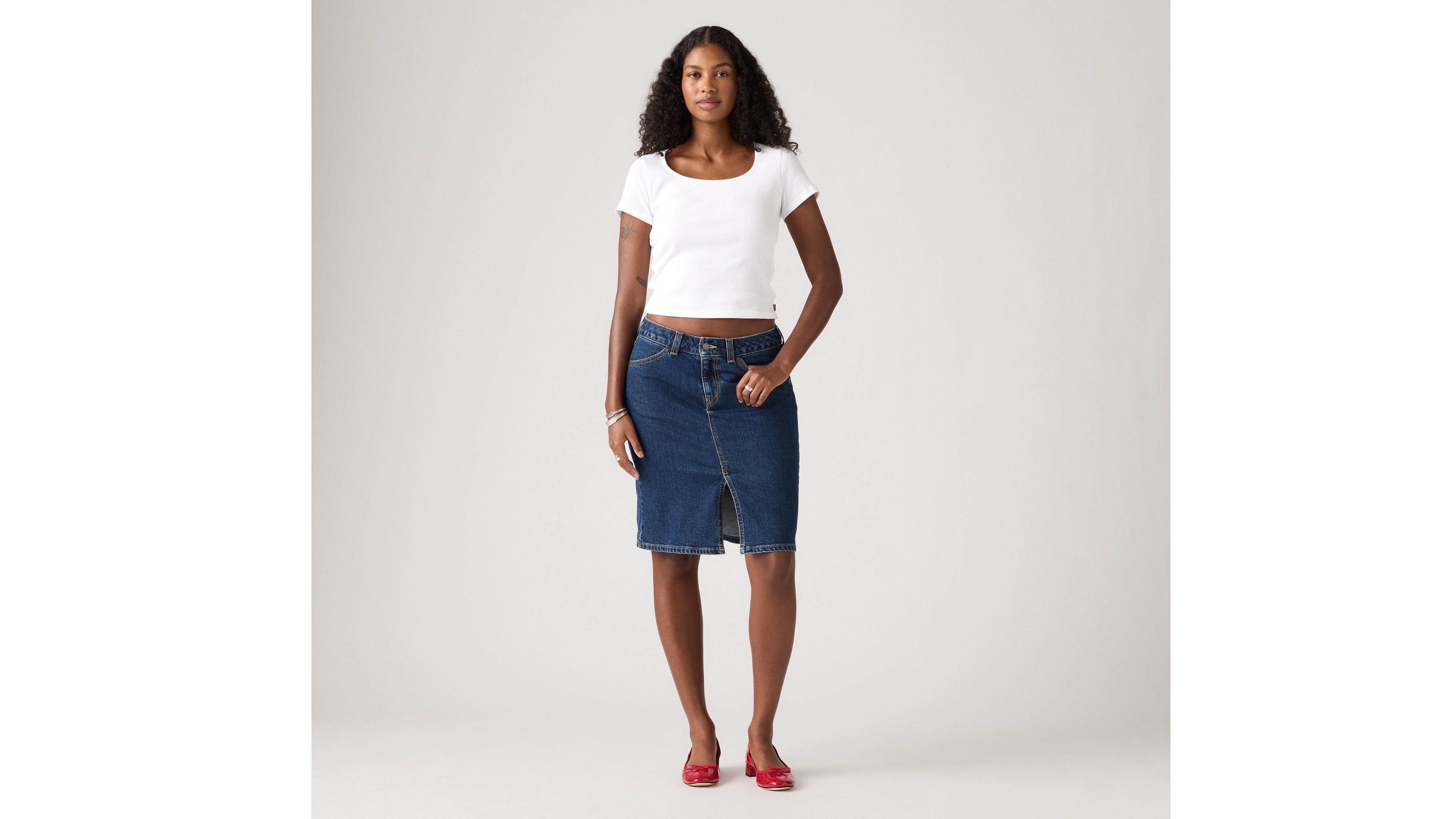 Простая, непринужденная и идеально подходящая к вашему образу, наша юбка-миди с низкой посадкой — незаменимая вещь, которую можно носить где угодно. Мы добавили ей низкую посадку в стиле ретро, облегающий крой и лёгкую эластичность для комфорта в течение всего дня.