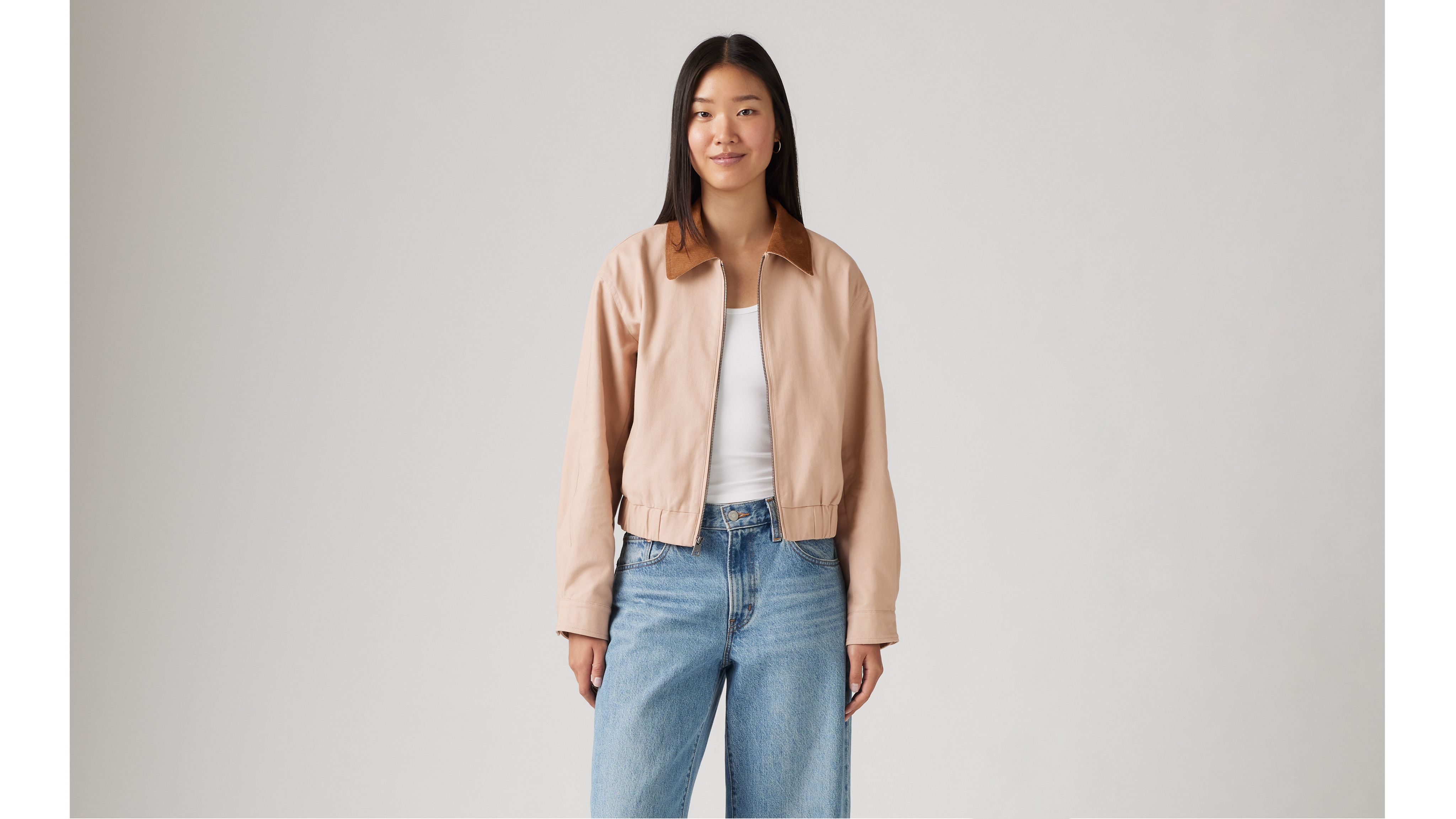 Ощутите непринужденный стиль и комфорт в нашей короткой хлопковой куртке, которая обеспечит вам уют и моду. Благодаря роскошному отложному вельветовому воротнику эта куртка идеально сочетает в себе классический шарм и современный стиль. Застежка-молния по центру спереди обеспечивает плотную посадку, а два нижних прорезных кармана добавляют функциональности и стиля. Эластичный подол обеспечивает удобную, гибкую посадку, а регулируемые кнопки на манжетах позволяют персонализировать образ. Идеально подходящая для повседневных прогулок или создания многослойной одежды, эта куртка добавит изысканности любому гардеробу.