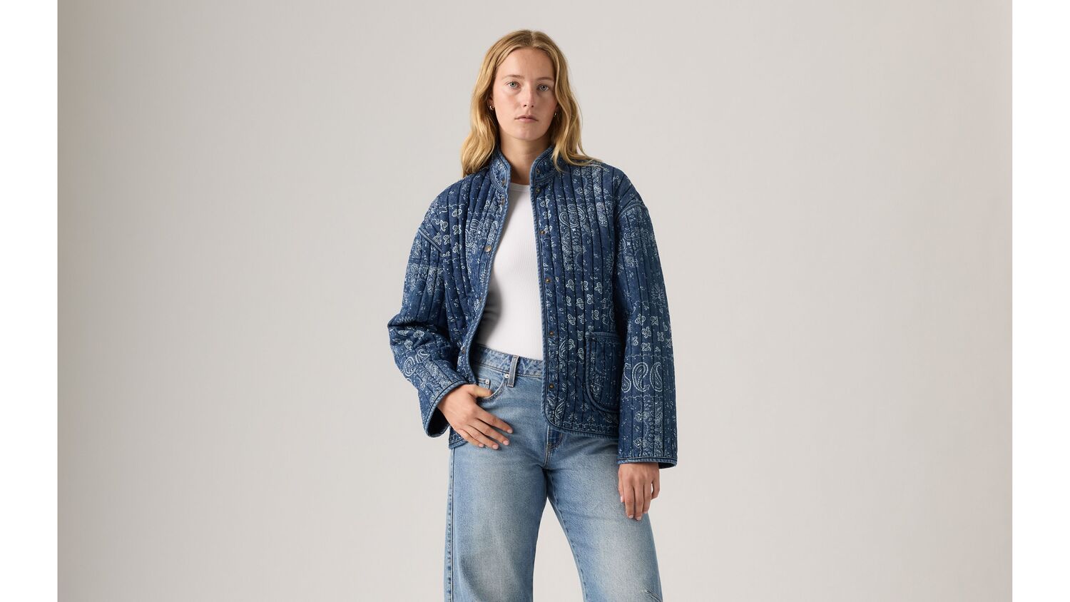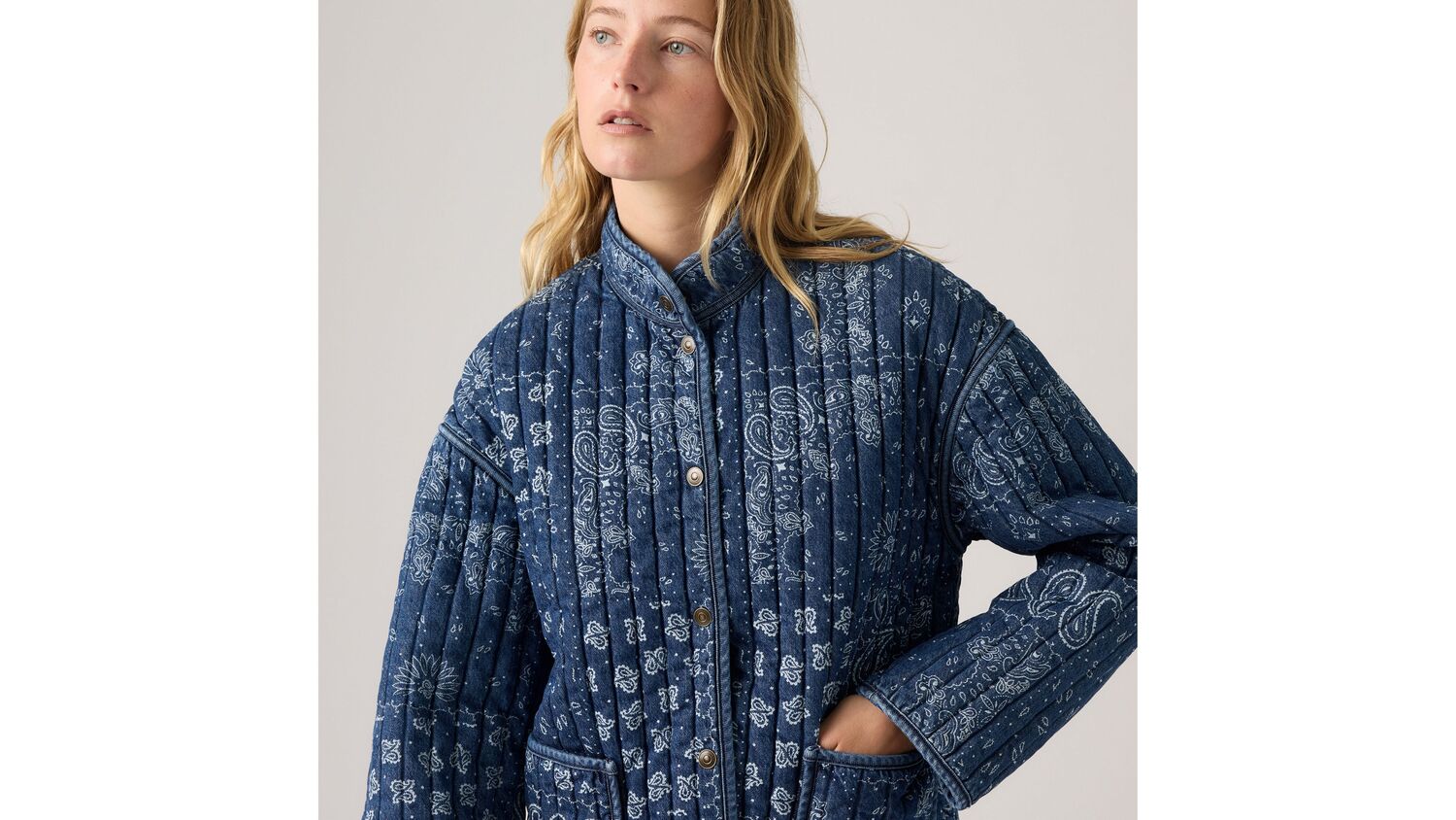 Наша куртка Lottie Liner станет отличным дополнением к любому образу благодаря изысканному стеганому джинсовому крою, завязкам и структурированному стандартному крою.