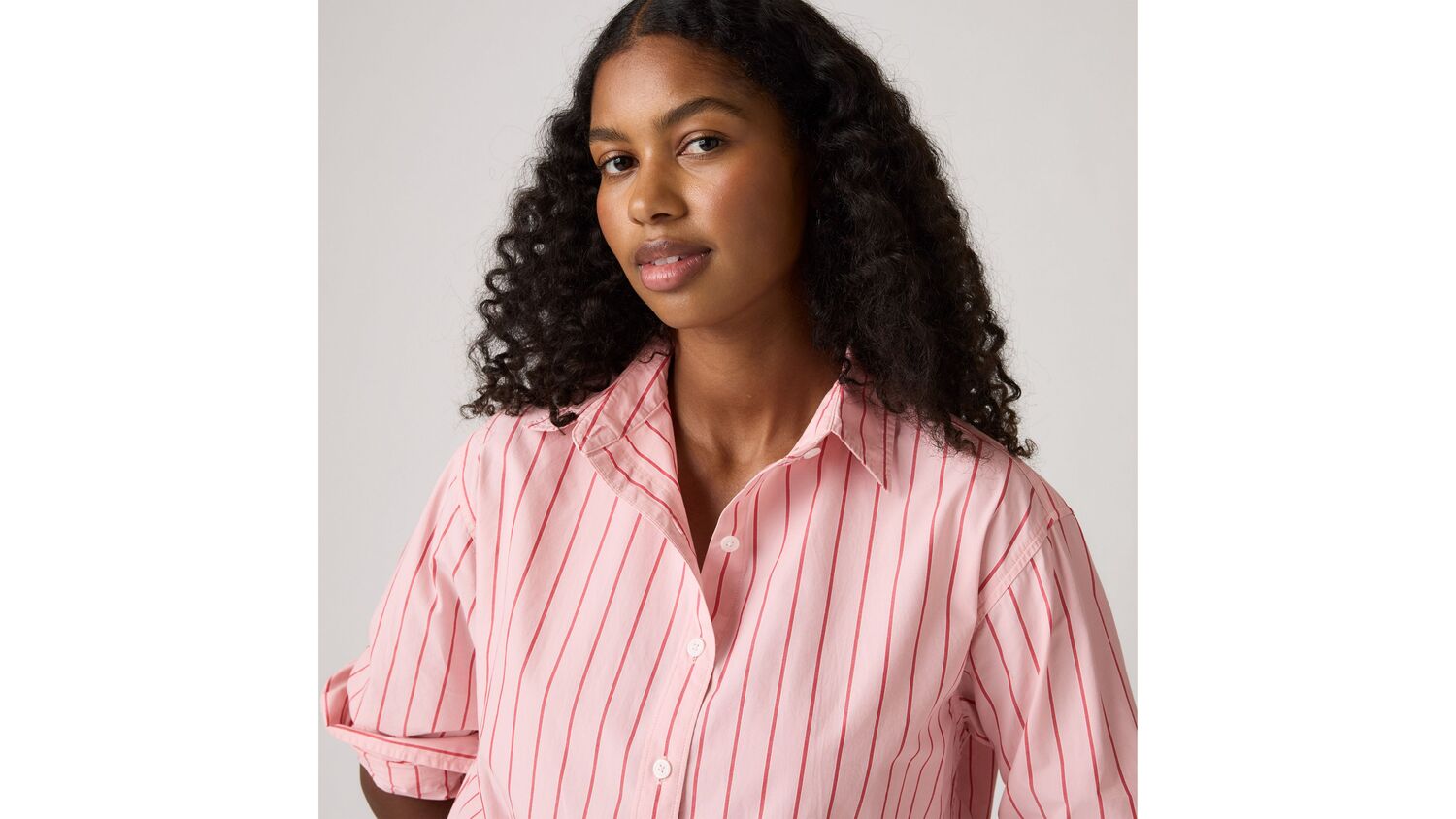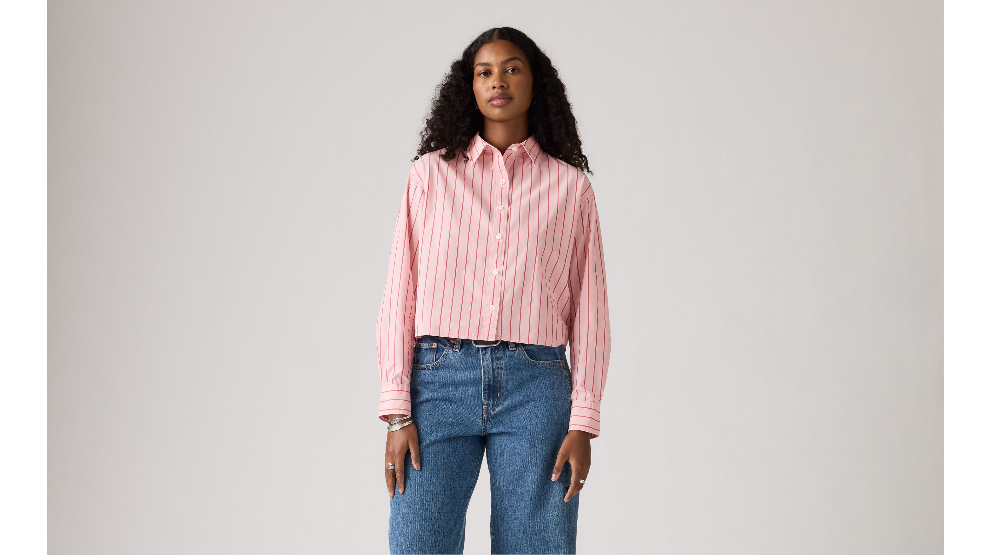 Не совсем обычная рубашка на пуговицах. Эта укороченная рубашка Harlie отличается элегантным воротником, свободным кроем и застёжкой на пуговицы спереди.