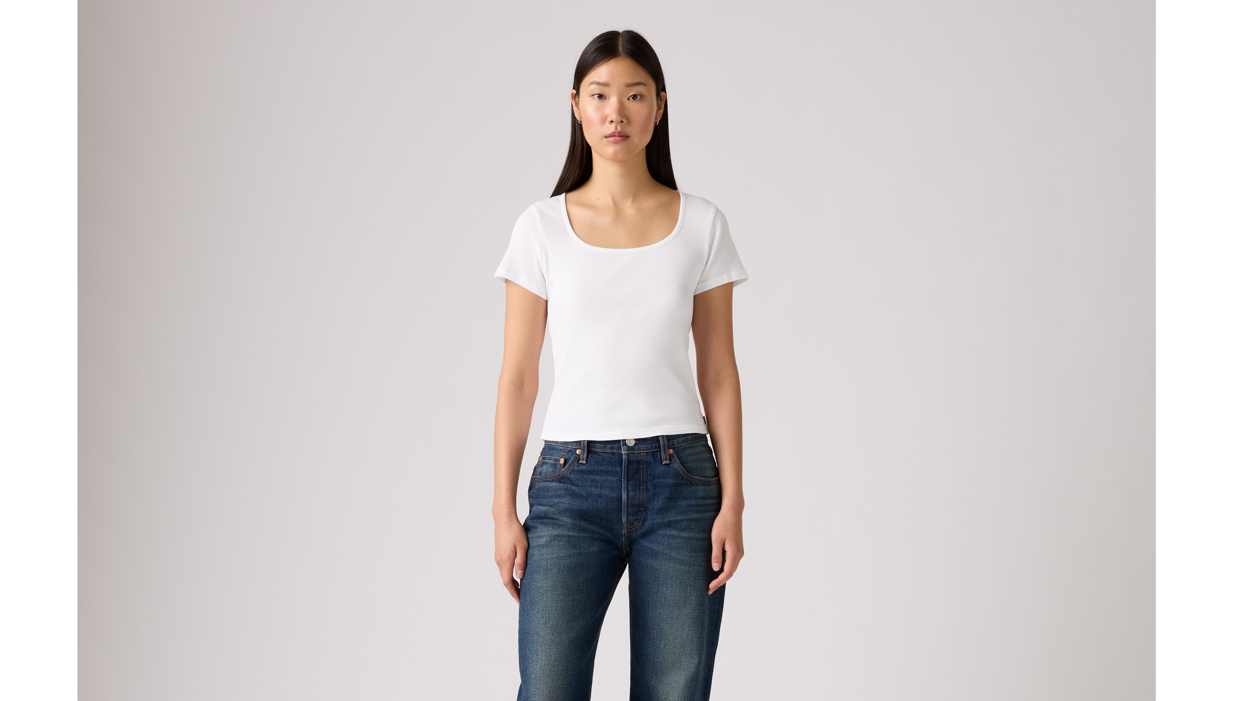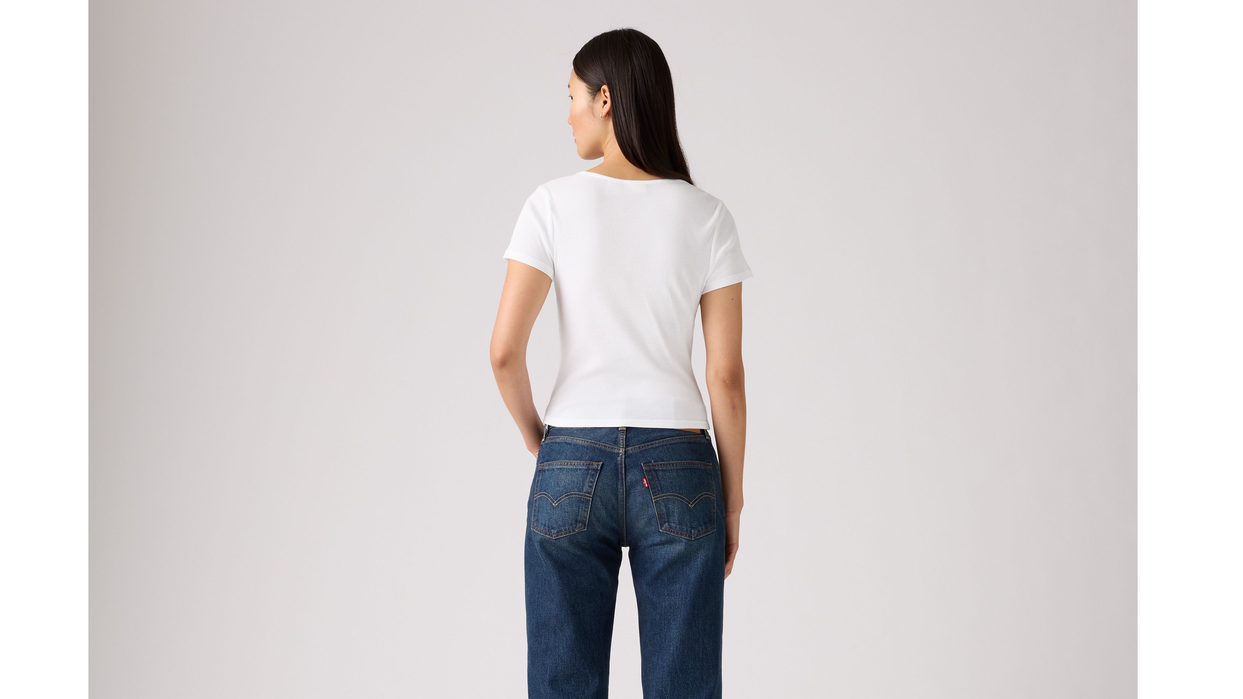 Классика, такая как наша футболка Essential Square Neck, никогда не выходит из моды. Мы создали эту модель с ультра-красивым вырезом и приталенным кроем, дополненным нашей фирменной красной застежкой.