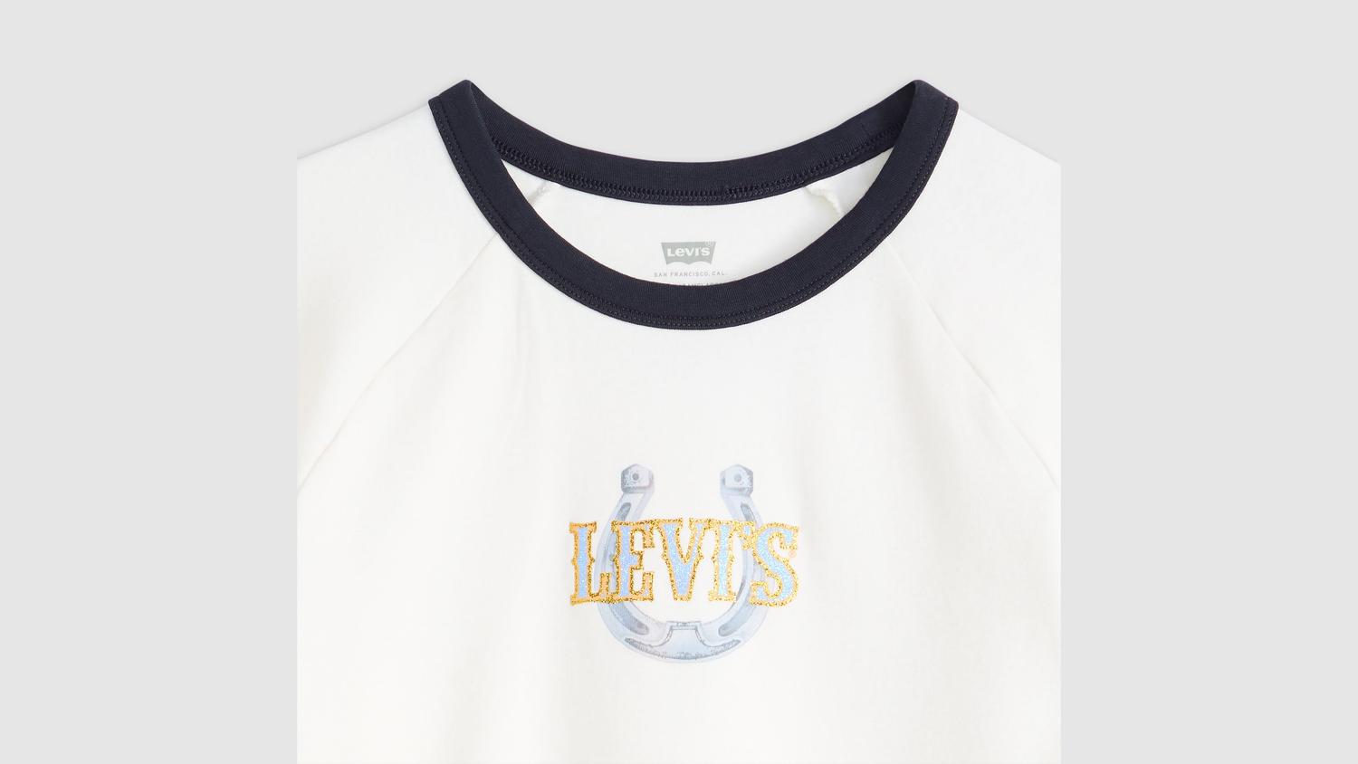 В нашей футболке Graphic Riley Raglan нет ничего простого. Она имеет приталенный крой, удобные короткие рукава, принт с принтом и увенчана уникальной блестящей графикой Levi's.