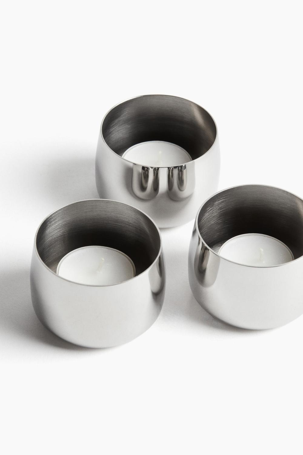 Подсвечники из матовой нержавеющей стали для чайных свечей.
