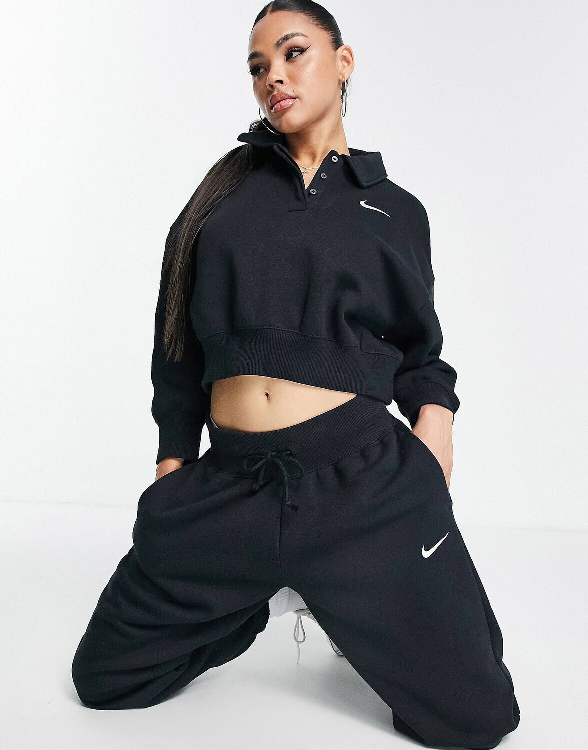 Черные джоггеры с высокой посадкой и парусиной Nike mini swoosh