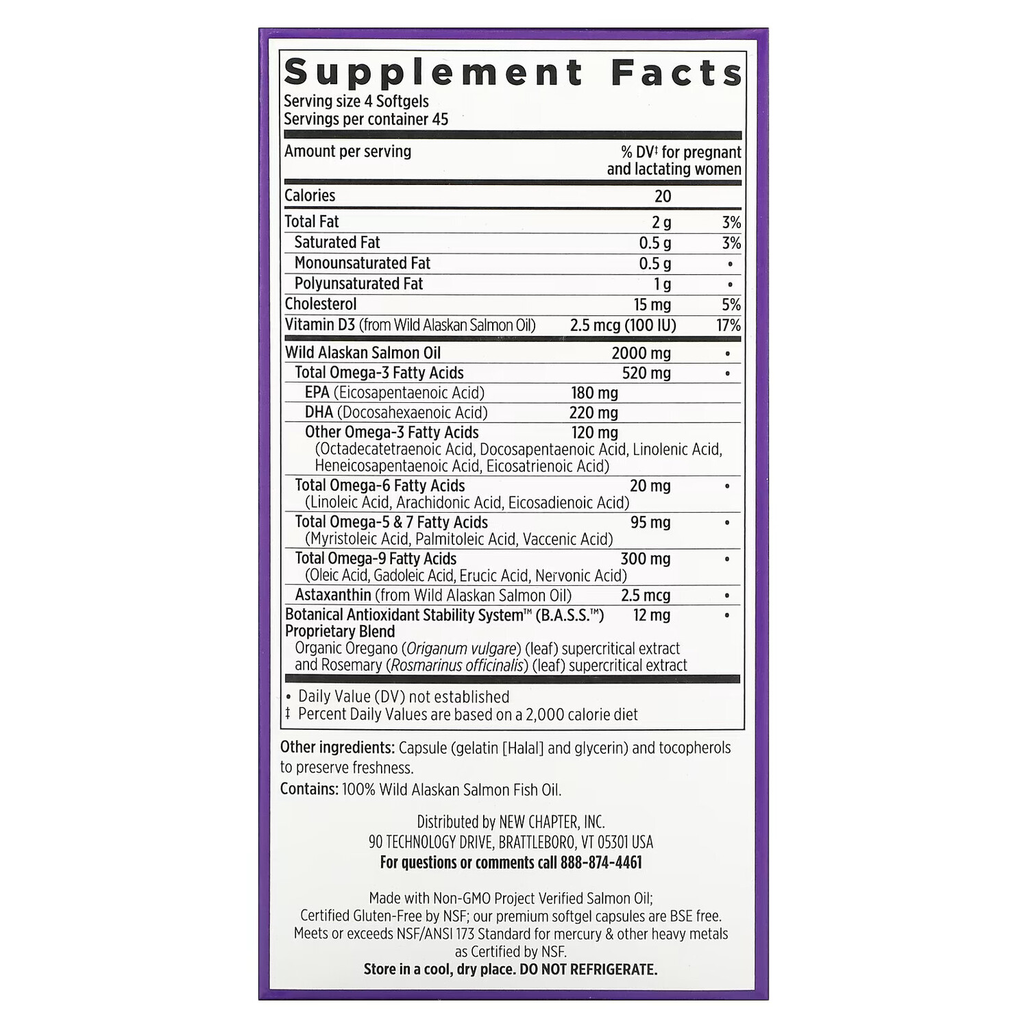 - Содержит жир лосося без ГМО, имеющий сертификат Non-GMO Project Verified