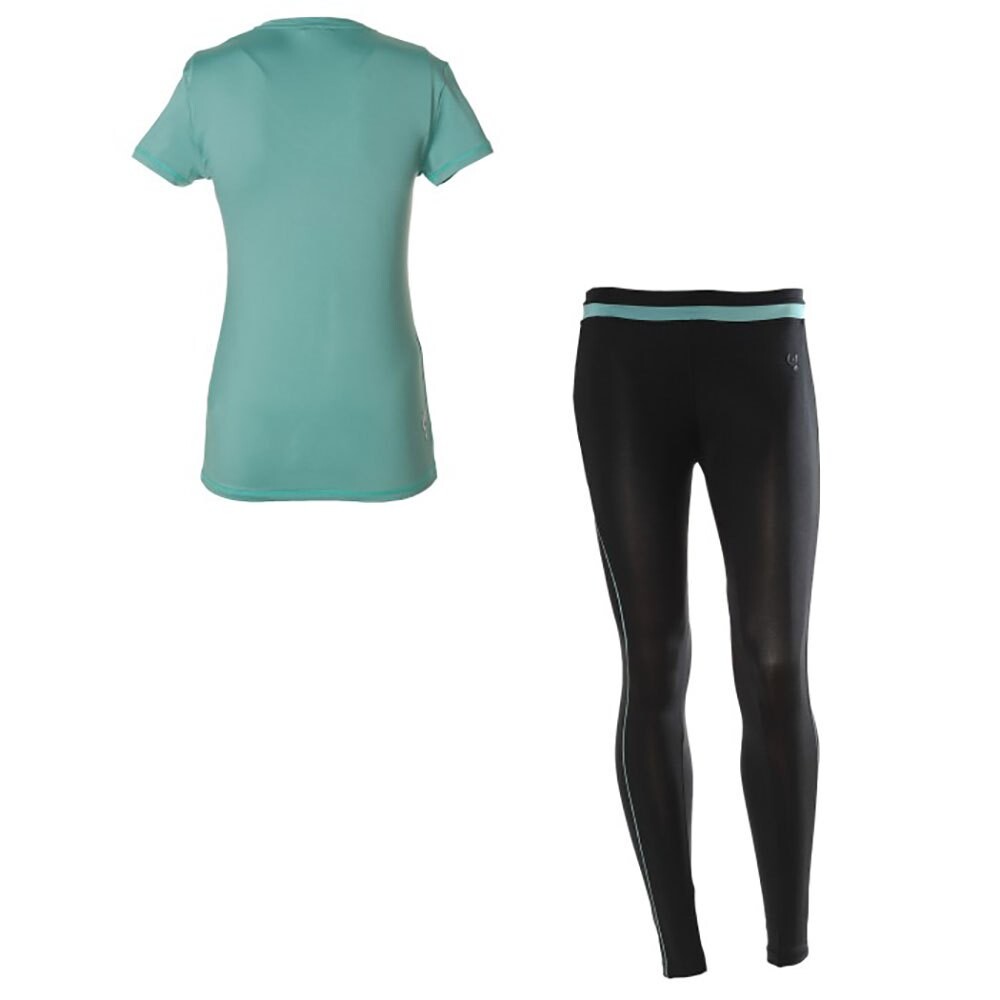Женский комплект, состоящий из леггинсов и футболки с коротким рукавом.